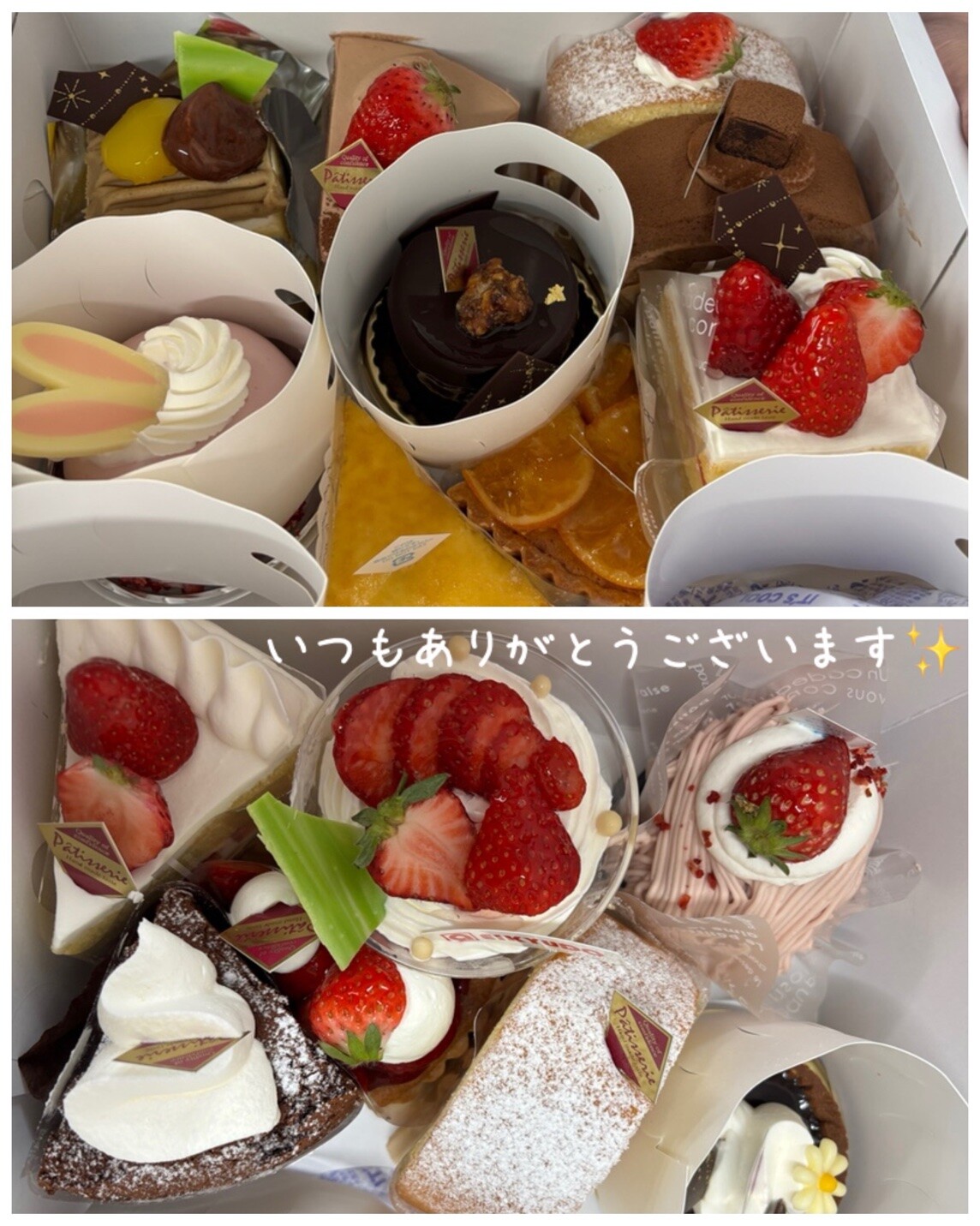 その他 2026.04.12 沢山のケーキいただきました!! 別子さんありがとうございます! 先日、いつもお世話になっている別子さんから沢山のケーキいただきました〜 こんなにたくさん嬉しすぎます どれも美味しそうすぎて、めちゃくちゃ迷います 新居浜にある永久堂さんのケーキどれもボリューミーで大きい スタッフもめちゃくちゃ大喜びですさっそく15時のおやつにいただきました 可愛いケーキや、お洒落なケーキまであるので皆さんも是非行ってみてくださいね