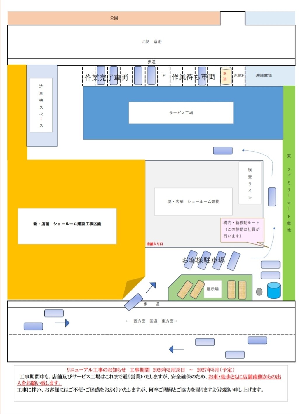 工事期間中も、店舗およびサービス工場はこれまで通り営業いたしますが、