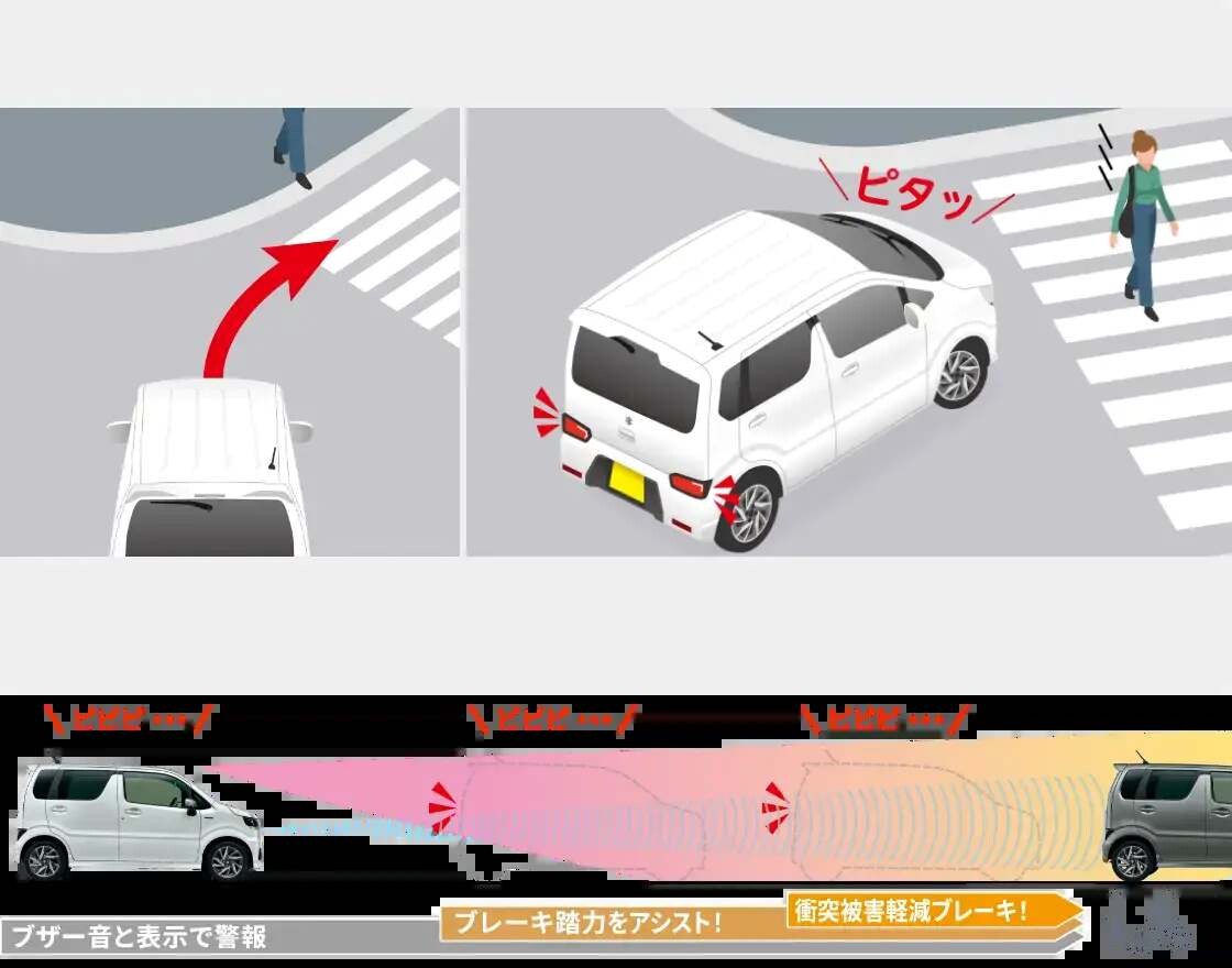 ①システムが衝突のおそれがあると判断すると、ブザー音
