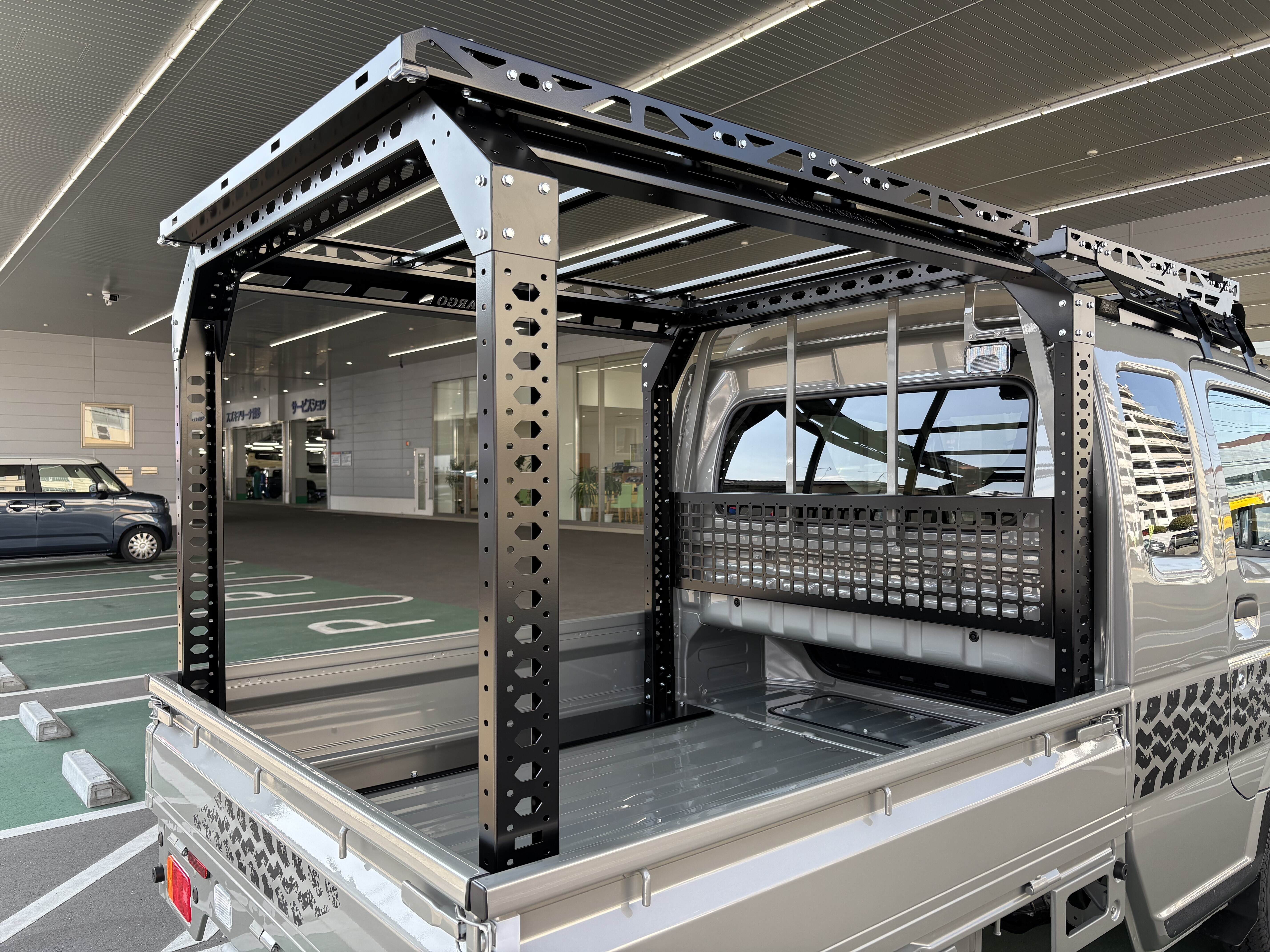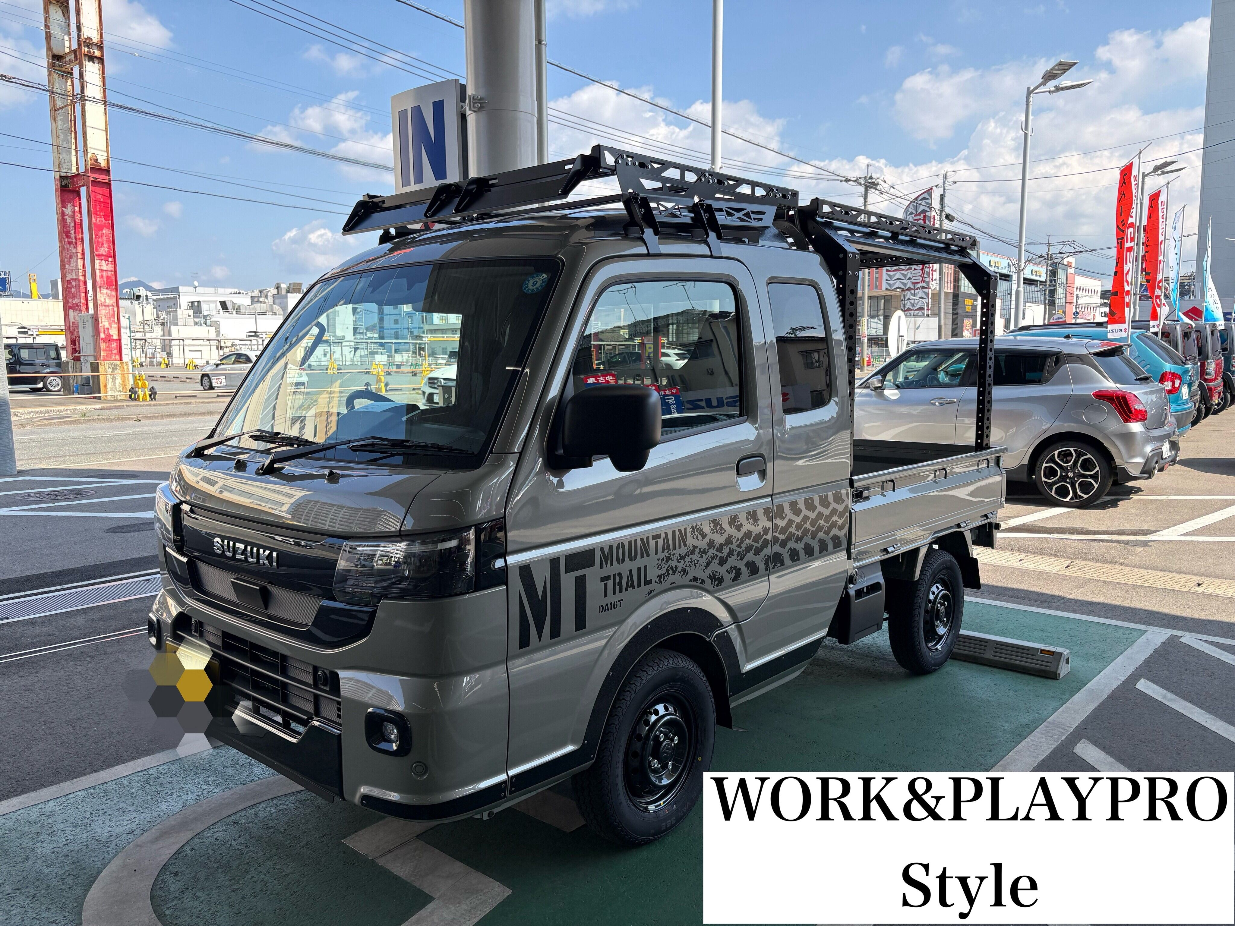 新車情報 2026.03.23 【ハードカーゴ × スーパーキャリイ】 みなさまこんにちは いつもスズキアリーナ博多のホームページをご覧いただきありがとうございます ついに 当店試乗車のスーパーキャリイが WORK&PLAYPRO Style に進化しました!!! アフターパーツメーカーのハードカード株式会社様より出ている カスタムパーツが架装されております(/≧▽≦)/ ベースキャリアやルーフラックなど とてもかっこよく仕上がっています 店頭に展示しておりますので このかっこよさ その目で確かめてみませんか みなさまのご来店お待ちしています