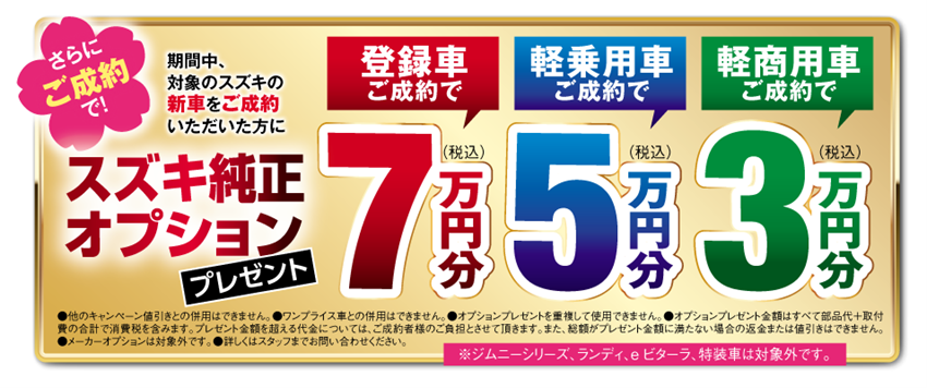 【新車限定】ご成約オプションプレゼント