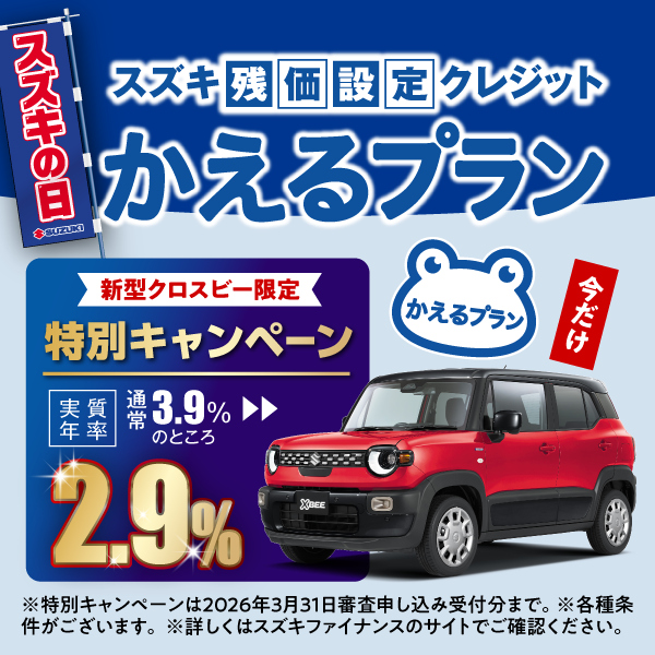 新型クロスビーは残価設定クレジット特別キャンペーン中