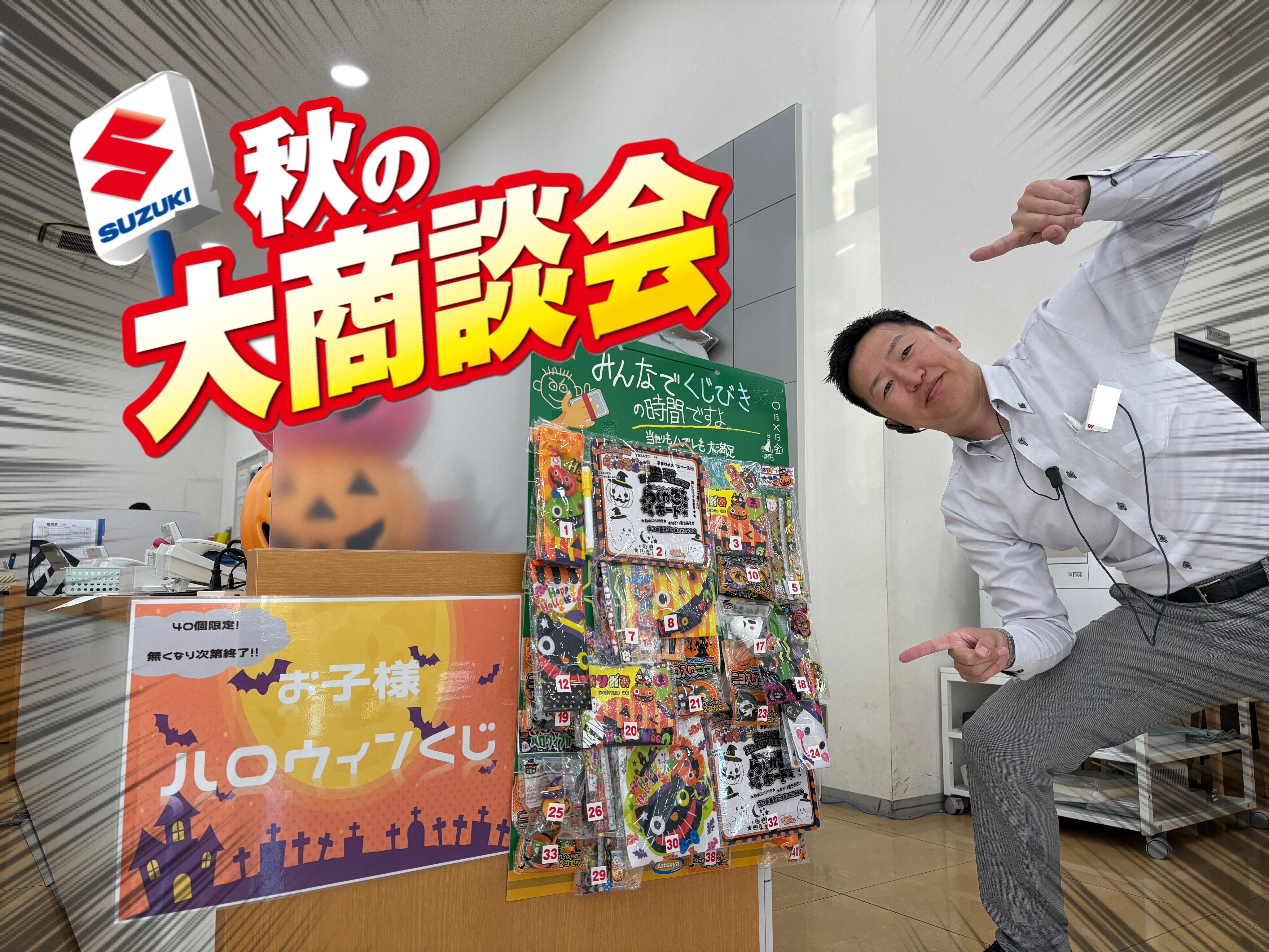イベント/キャンペーン 2025.10.17 秋の大商談会♪ 皆様こんにちは 本日も アリーナ福岡東の ホームページをご覧いただき、 ありがとうございます。 朝夕も涼しくなり やっと秋を感じられる気温になってきましたね 芸術の秋。読書の秋。 皆さんはどんな秋がお好きですか?? 私は断然、 食欲の秋 ですね (さつまいもばかり食べています(笑)) 今週末は 秋の大商談会 を開催いたします 10月18日(土)・19日(日) また、当店では お子様向けに ハロウィンくじを ご準備しております また、各種プレゼントもご用意しております 愛車無料点検も 大好評開催中 皆様のお越しを お待ちしております。