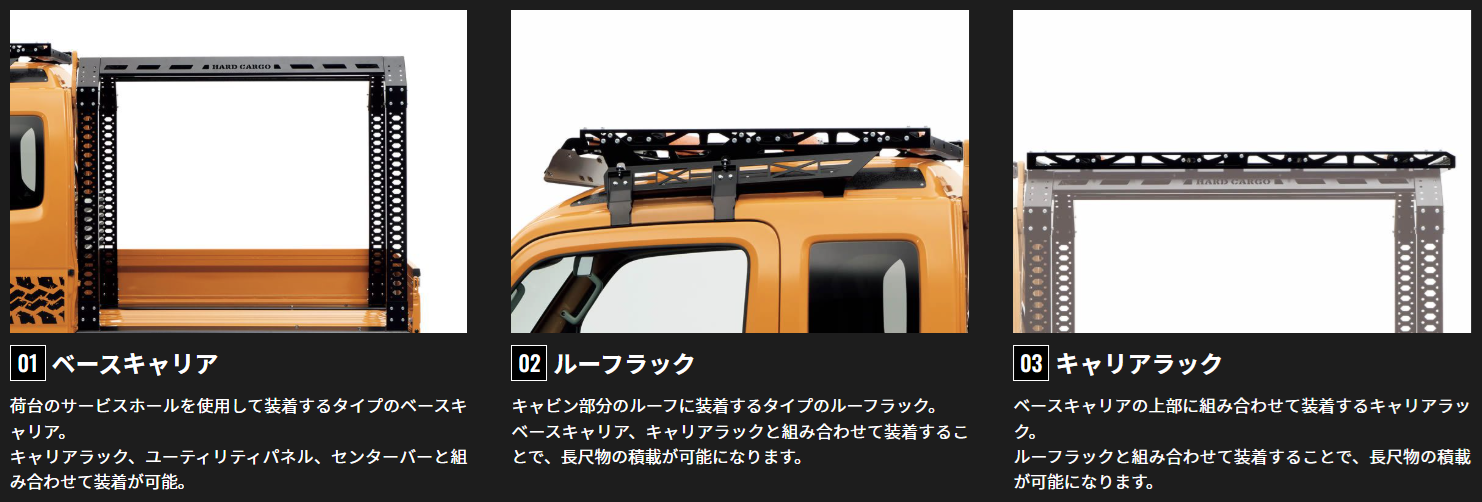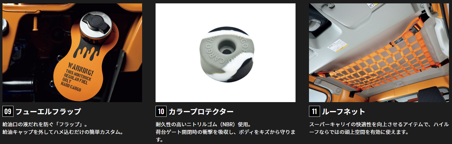 ハードカーゴさまのキャリイ・スーパーキャリイ専用アイテムの数々です。