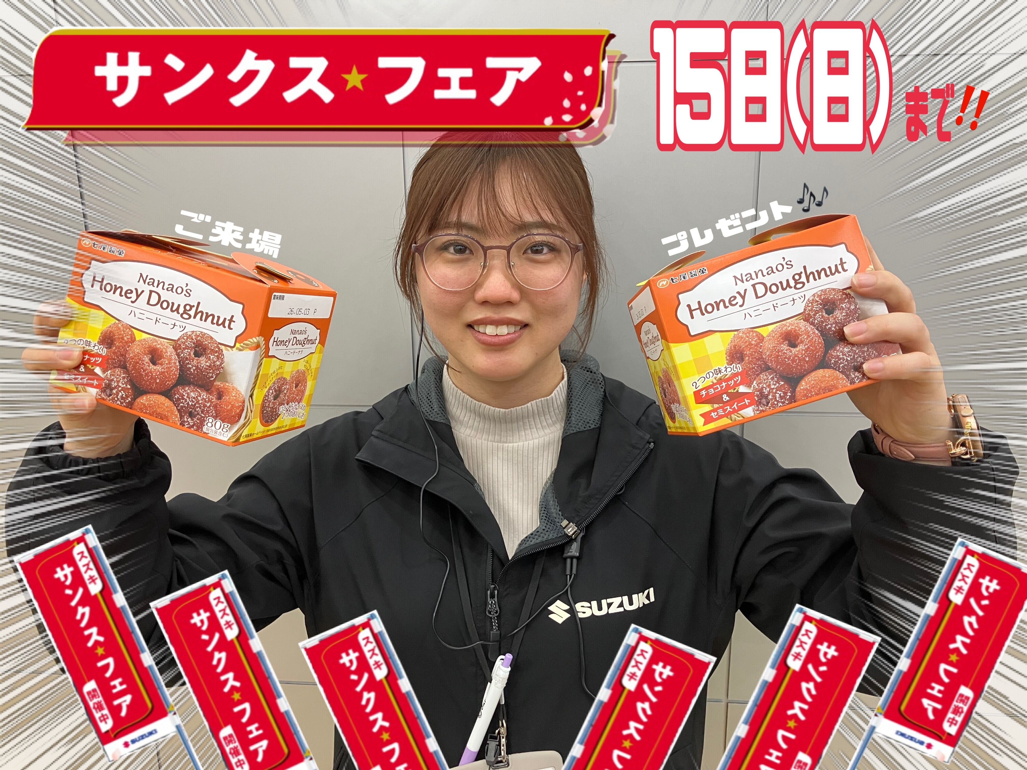 イベント/キャンペーン 2026.03.12 サンクスフェア間もなく終了!! 皆様こんにちは。 本日もアリーナ福岡東の ホームページをご覧いただき、 誠にありがとうございます。 スズキの大決算 サンクスフェア 開催期間もわずかとなりました 更に!! お得な低金利キャンペーンも 間もなく終了です この機会に是非、ご検討を