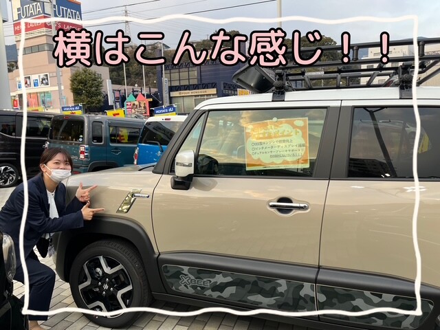 限定車 2026.01.23 大塔店限定クロスビー! いつも佐世保大塔店のブログをご覧いただき、 誠にありがとうございます!! 実は、佐世保大塔店にある 新型クロスビーの試乗車が パワーアップしました★ 名付けて、 「アウトドアスタイル」 何が変わったのかというと ルーフレールと 迷彩柄の ドアスプラッシュガードと フェンダーガーニッシュが ついてオシャレに なりました! ぜひ、皆様見に来てください 24日(土)・25日(日)は スズキの日! 皆様のご来店お待ちしております
