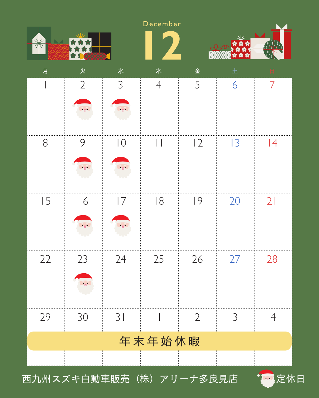 *12月定休日のお知らせ*