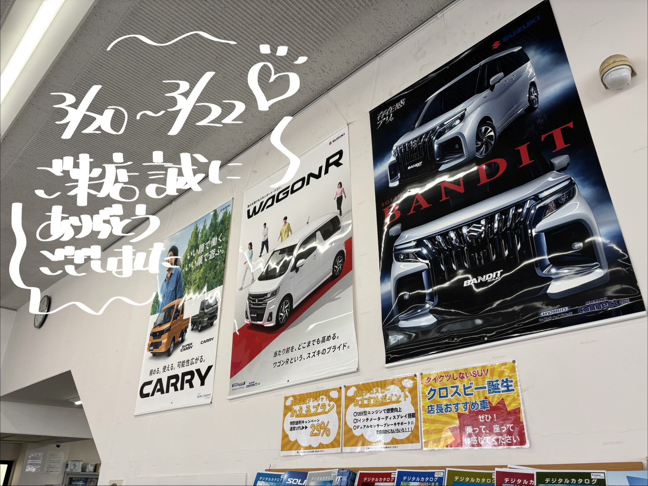 その他 2026.03.23 ご来店誠にありがとうございました(*'▽') みなさまこんにちは(=゚ω゚)ノ 先日の3連休はいかがお過ごしでしたでしょうか? アリーナ時津は沢山のお客様にご来店いただきまして 大変にぎわっておりました♡ ご来店いただいた皆様 誠にありがとうございました 3月も残りわずかとなりました~ 4月は新年度が始まります! 新入社員も沢山入ってきてくれますので ブログに登場するのを楽しみにお待ちください (株)スズキ自販長崎 アリーナ時津 TEL:095-882-7351 定休日:毎週水曜日・毎月第2、3火曜日