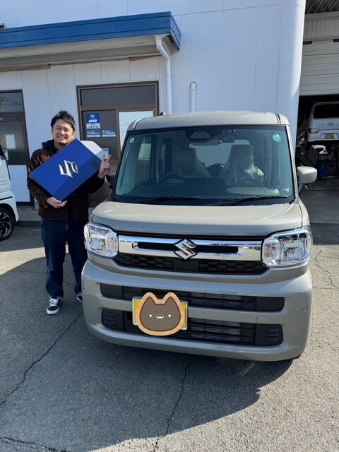 その他 2026.02.19 新車スペーシアご納車です♪ みなさまこんにちはお久しぶりの投稿です 本日は、お客様の新車ご納車紹介です!! スペーシアをご納車されました!!(写真ご協力ありがとうございます!!!) 笑顔がとても素敵なお客様です♪ これからもどうぞよろしくお願いいたします