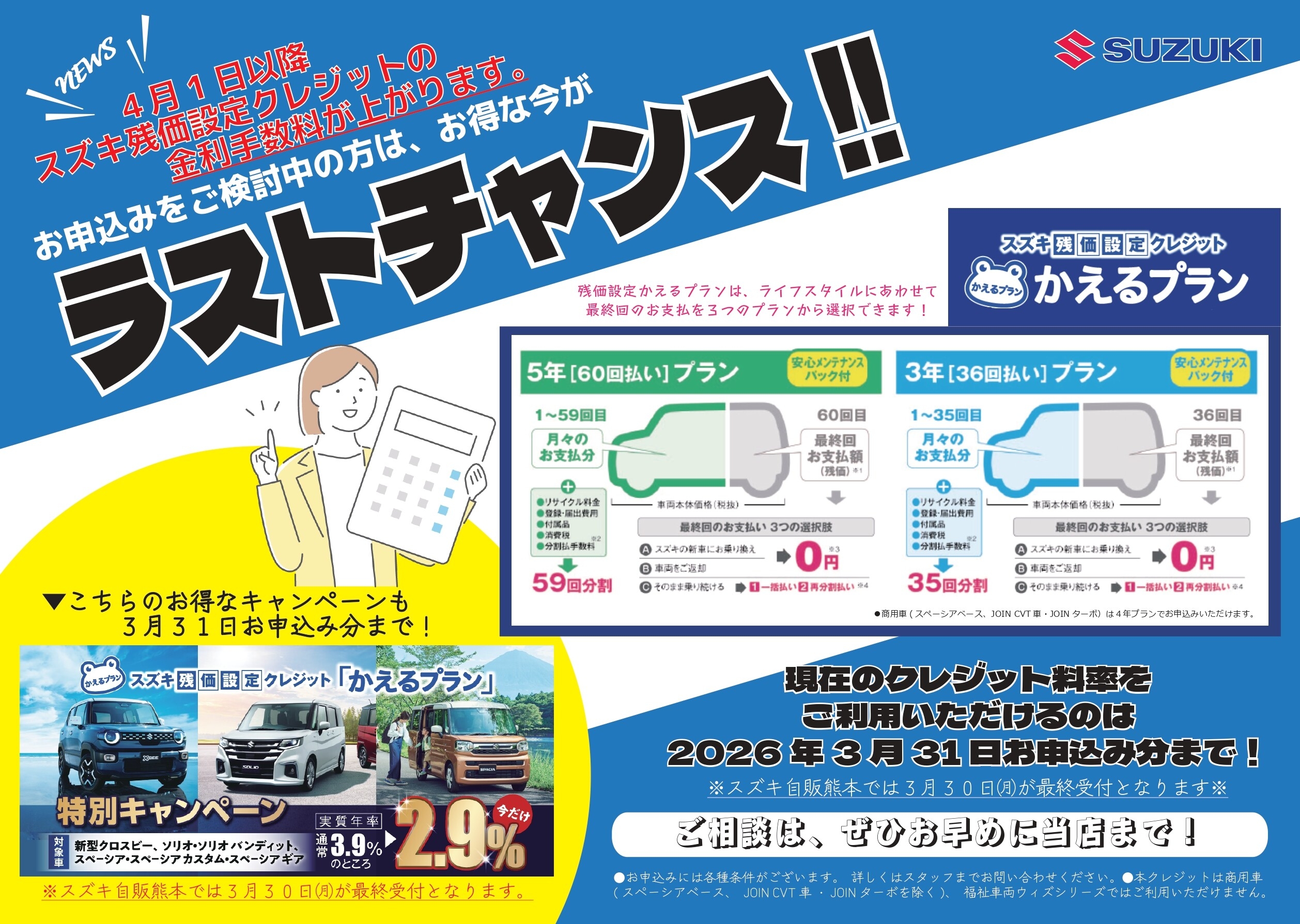 また、4月1日からかえるプラン(残価設定クレジット)の金利が変更になります。
