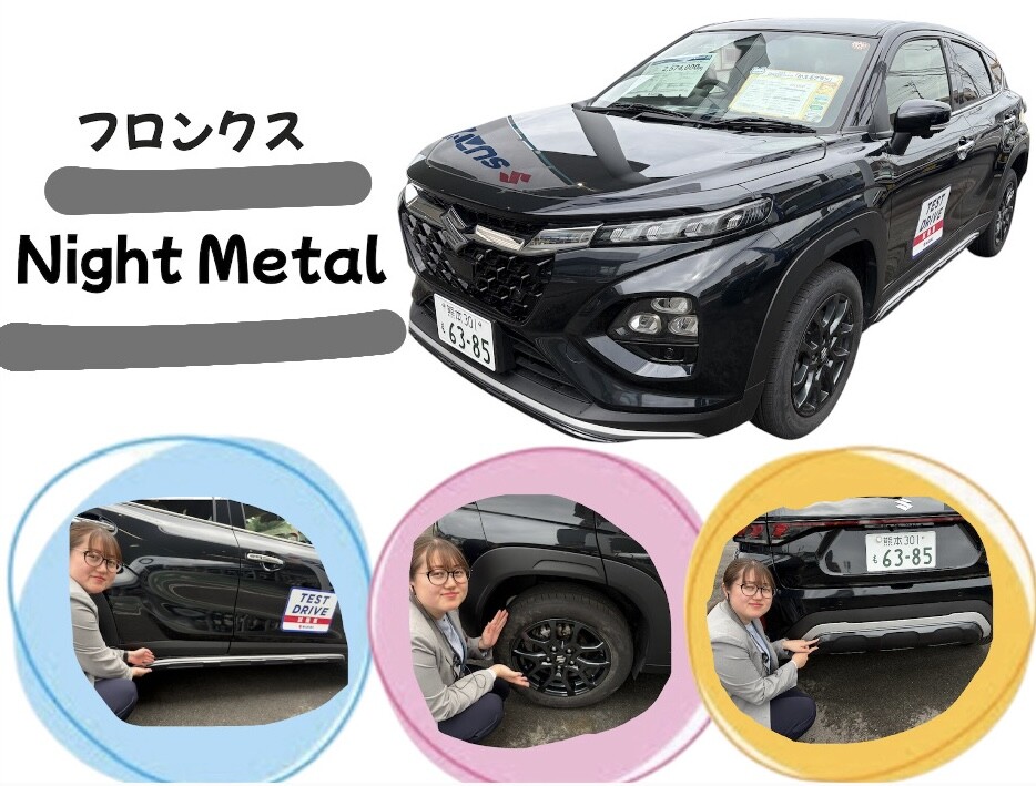 その他 2026.04.20 ★☆フロンクス ナイトメタル☆★ いつも竜田のブログをご覧いただき誠にありがとうございますっ!! 当店の試乗車フロンクスが、 【 ナイトメタル仕様 】 へ変更になりました! 今回変更になったのは ・フロントアンダーガーニッシュ ・サイドアンダーガーニッシュ ・リヤアンダーガーニッシュ ・アルミホイール 各所にナイトメタル加飾が加わり、より引き締まった存在感のある スタイルに仕上がっています。 標準仕様とはひと味違う、上質でスタイリッシュなフロンクスをぜひ ご覧ください!! スタッフ一同皆様のご来店、心よりお待ちしております