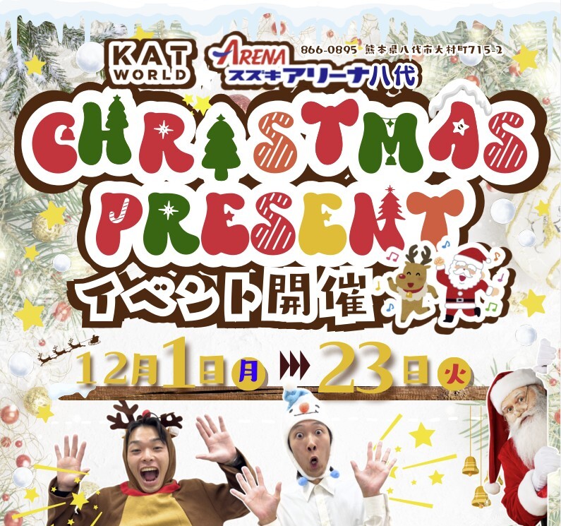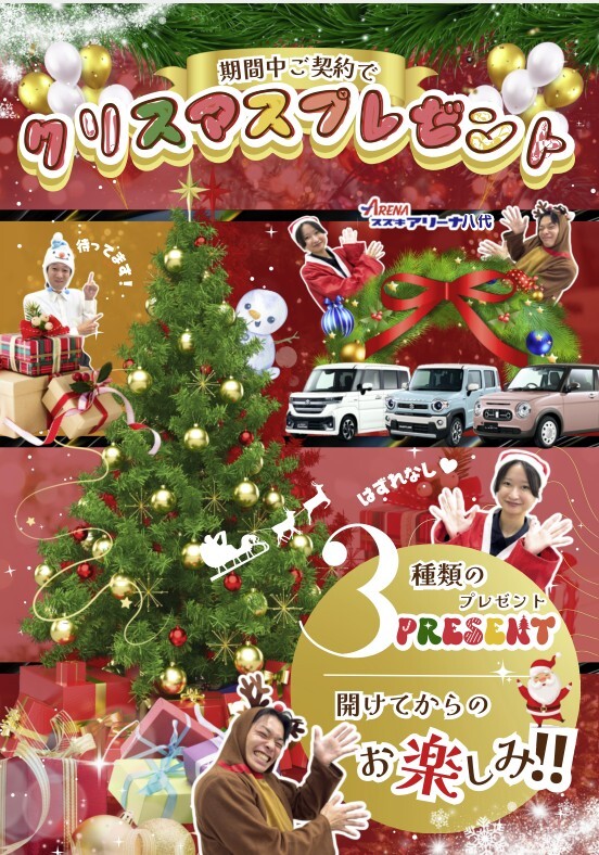 イベント/キャンペーン 2025.11.29 今年も残すところあと1ヶ月!!クリスマスイベント開催いたします♬ キャンペーン期間:2025.12.01~2025.12.23 早いもので2025年も残すところあと1ヶ月となりました… 今年最後のイベントのお知らせです 12月1日(月)~23日(火)までの期間 お車ご成約で… 当店からのクリスマスプレゼントをご準備しております プレゼントは全部で3種類から選べます 中身は… 開けてからのお楽しみ お車ご検討中の方 お得なこの機会にご来店お待ちしております 来店予約する スズキアリーナ八代 八代市大村町715-2 TEL:0965-33-8600