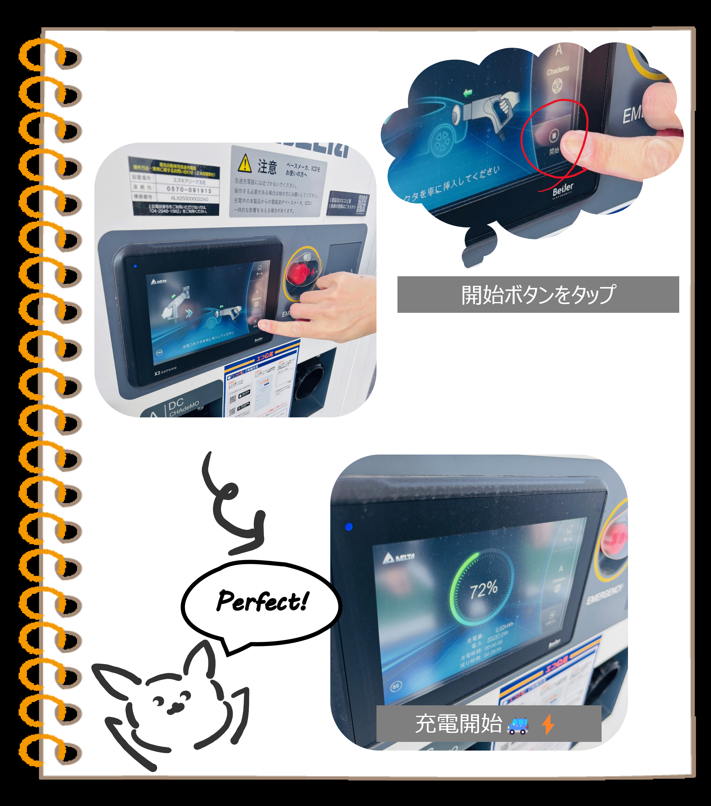 3. 急速充電器についている画面上のアイコンをタッチして充電開始!