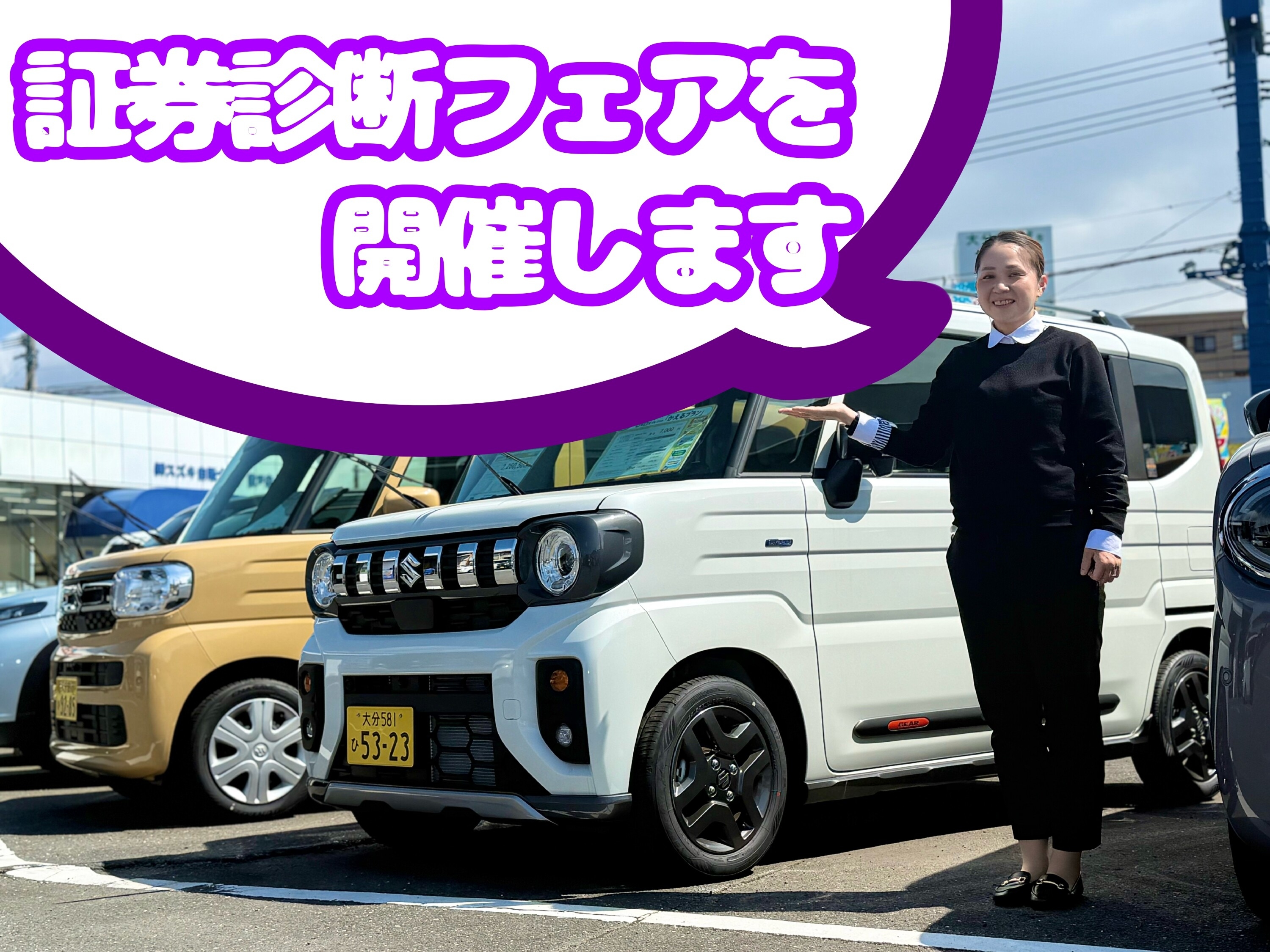 お世話になります。スズキ自販大分敷戸店です。