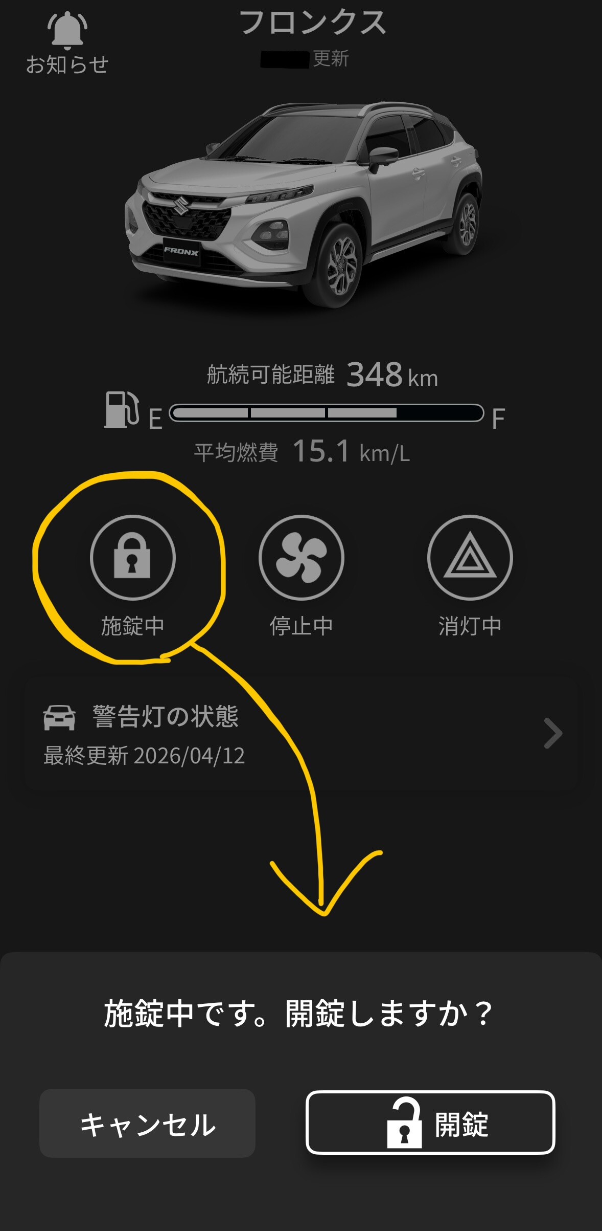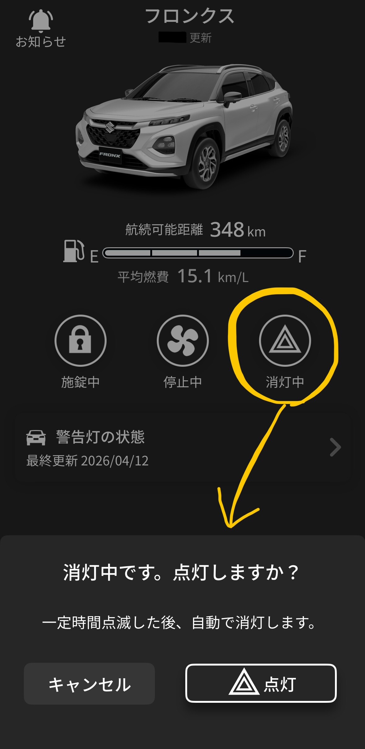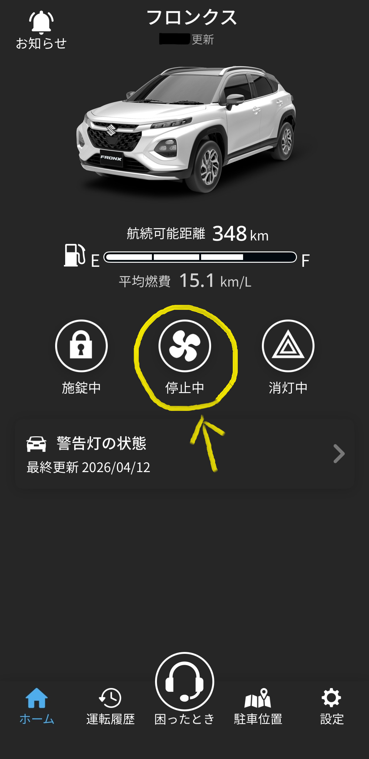 ↓ ※なかむら愛車フロンクスのアプリホーム画面です