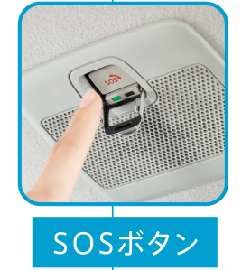 もしもの事故や急病の際は車内頭上にあるSOSボタン(手動通報)を押せば