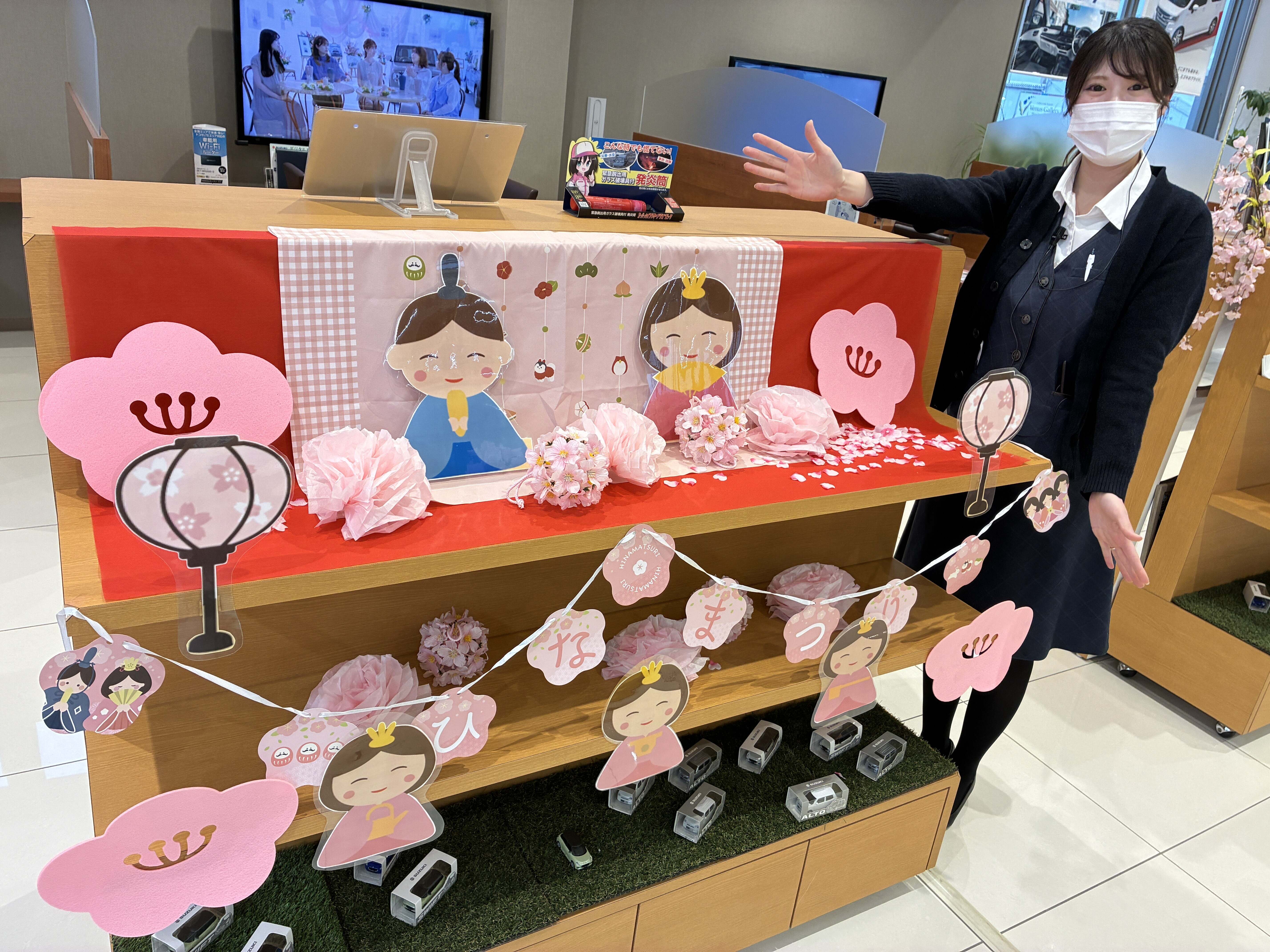 イベント/キャンペーン 2026.02.26 ひな祭り仕様になりました! 皆様こんにちは! 最近少し暖かい日があってもう少しで春なんだと感じ始めました 以前投稿したショールームの飾り付けがついに! 完成しましたー! ご来店の際はぜひ見て行ってください!笑