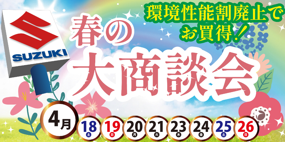 イベント/キャンペーン 2026.04.16 春の大商談会開催いたします☆彡 キャンペーン期間:2026.04.18~2026.04.26 こんにちは! スズキアリーナ宇佐です!!! 春の大商談会開催いたします! 今週18日よりいつもより ながーーーーーいキャンペーン期間になっております! お得なワンプライス車もお見逃しなく いつでもお待ちしております