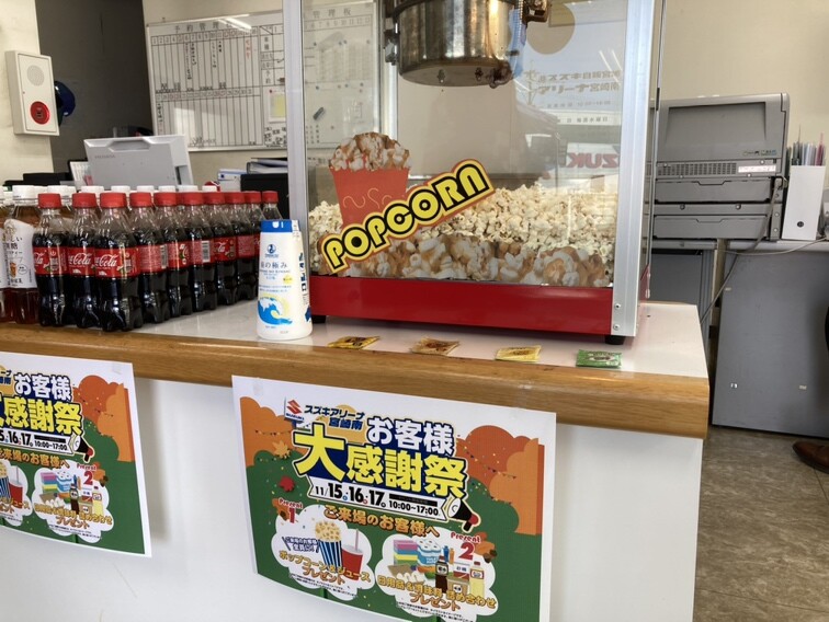 ポップコーンとジュースの振る舞いや日用品&調味料のプレゼント