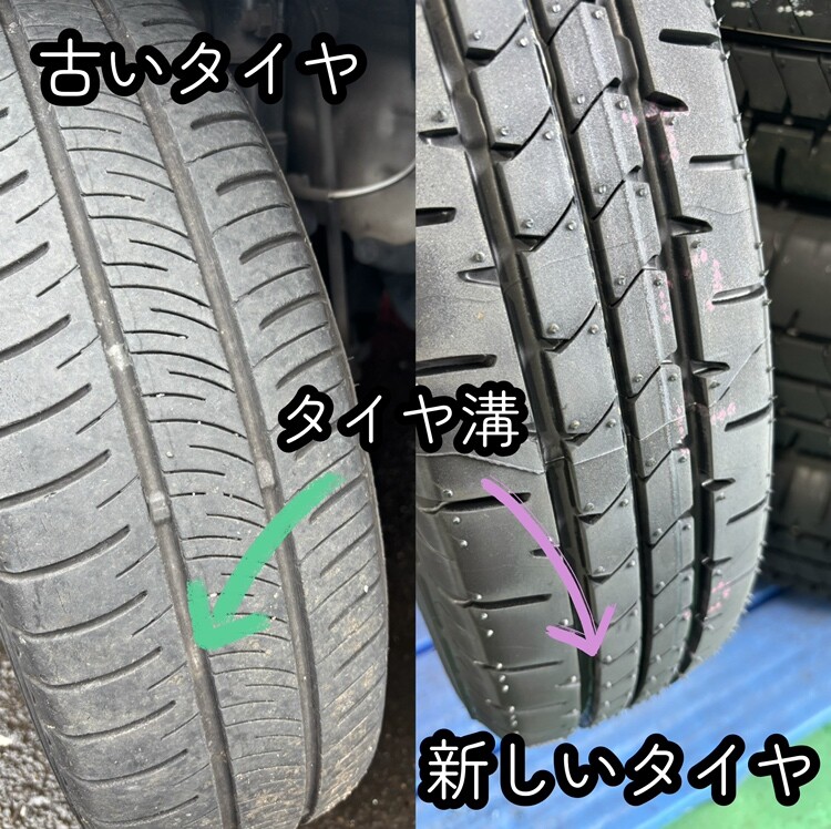 新品のタイヤと比べるとこんなに溝の深さが違うんですΣ(・□・;)!