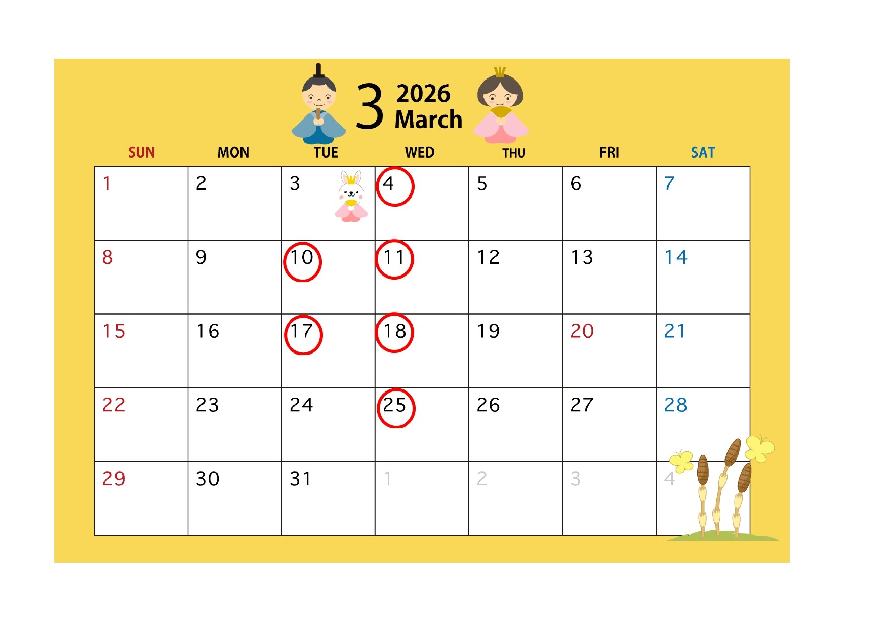 その他 2026.03.01 **定休日のご案内** こんにちは☺ 3月の定休日のご案内です 毎週水曜日と第二火曜日【10日】 第三火曜日【17日】は 定休日となっております。 ご不便お掛けしますが何卒ご理解のほど よろしくお願いいたします。