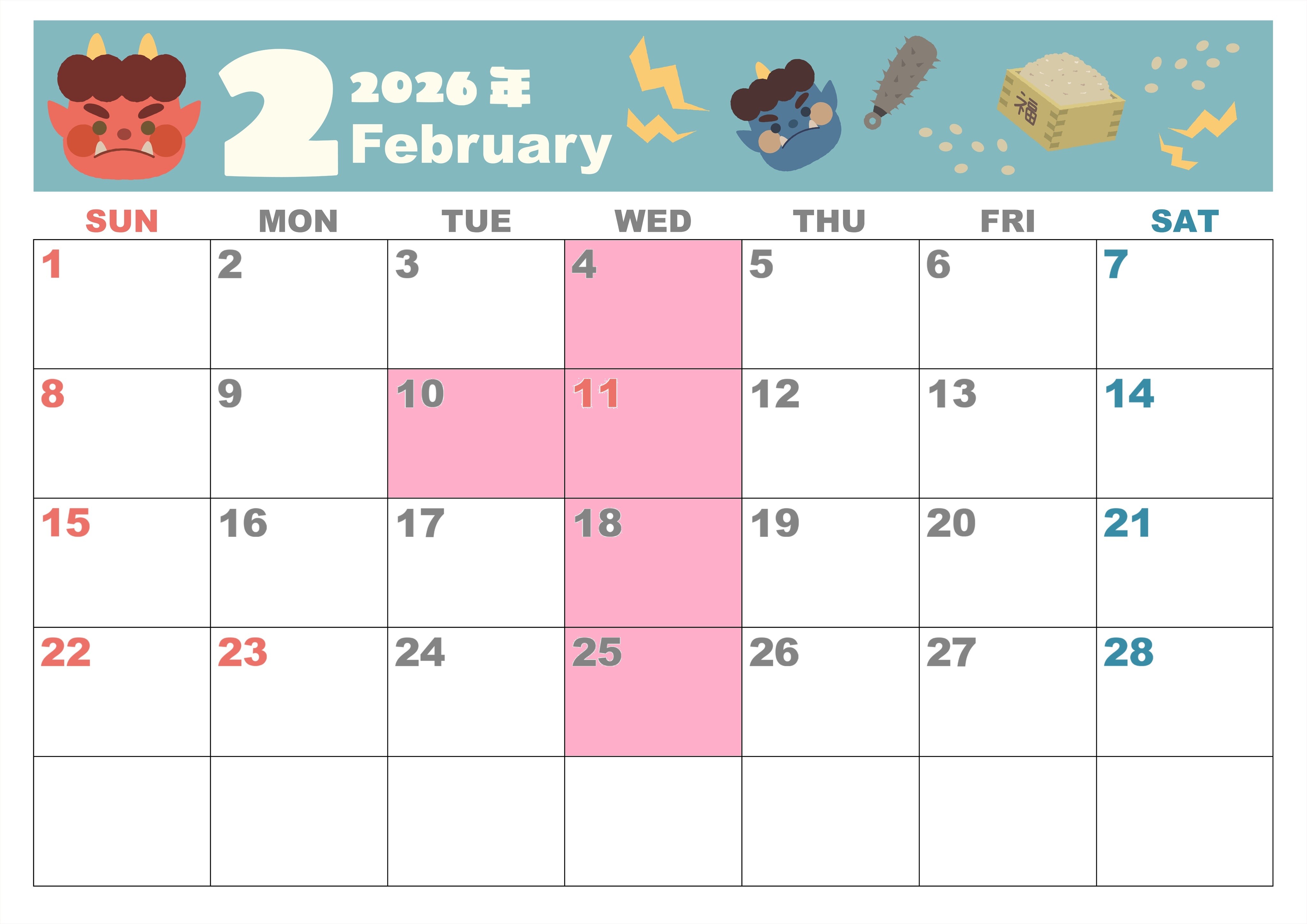 その他 2026.02.03 2月定休日のご案内 皆様こんにちは いつもホームページご覧いただき ありがとうございます。 今日は節分 今年の方角は南南東だそうですよ そして明日は立春 暦の上ではもう春だそうです まだまだ寒いですが 2月も元気いっぱい 皆様のご来店お待ちしております 2月定休日のご案内です。 毎週水曜日と、1月は10日(火)が 定休日となります。 ご不便お掛けしますが 何卒ご理解の程よろしくお願いいたします。