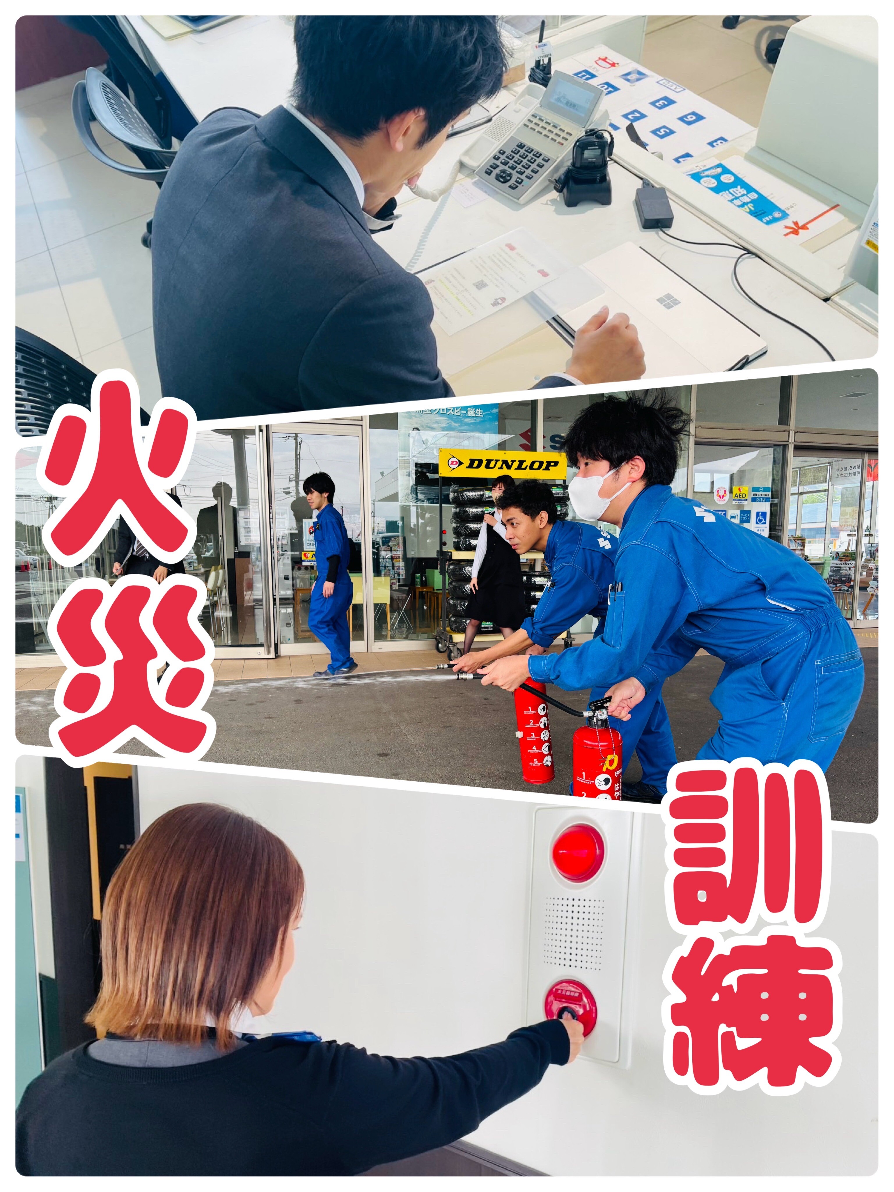 その他 2026.04.17 火災訓練実施しました(^^)/ 皆様こんにちは いつもホームページご覧頂き ありがとうございます。 半期に一度実施している 火災を想定した訓練を行いました。 \防災訓練の日/ 火災を想定して訓練を実施しました 実際に非常ベルを押して119へ連絡 (対応して頂いた消防署の方ありがとうございました) スタッフみんなで消火器の練習も行いました。 もしもの時に備えて大切な訓練 継続して続けていこうと思います。