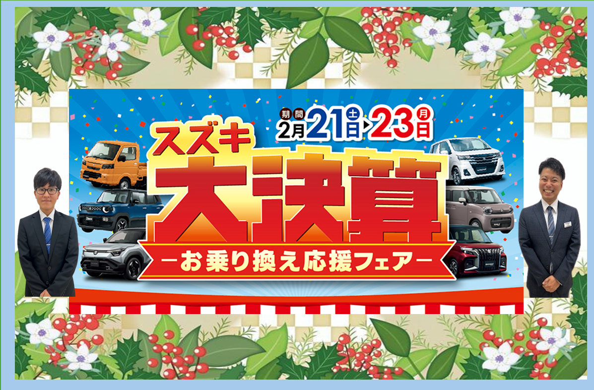 イベント/キャンペーン 2026.02.16 スズキ大決算お乗り換え応援フェア☆ キャンペーン期間:2026.02.21~2026.02.23 いつもアリーナ野田のHPをご覧いただき ありがとうございます ◆お得な かえるプラン◆ ◆スズキの新車ご成約で◆ スズキ純正オプションをお得に値引き ◆ご商談プレゼント◆ ◆ご成約プレゼント◆ 皆様のご来店、スタッフ一同 お待ちしております アリーナ野田 ☎0996-84-2811