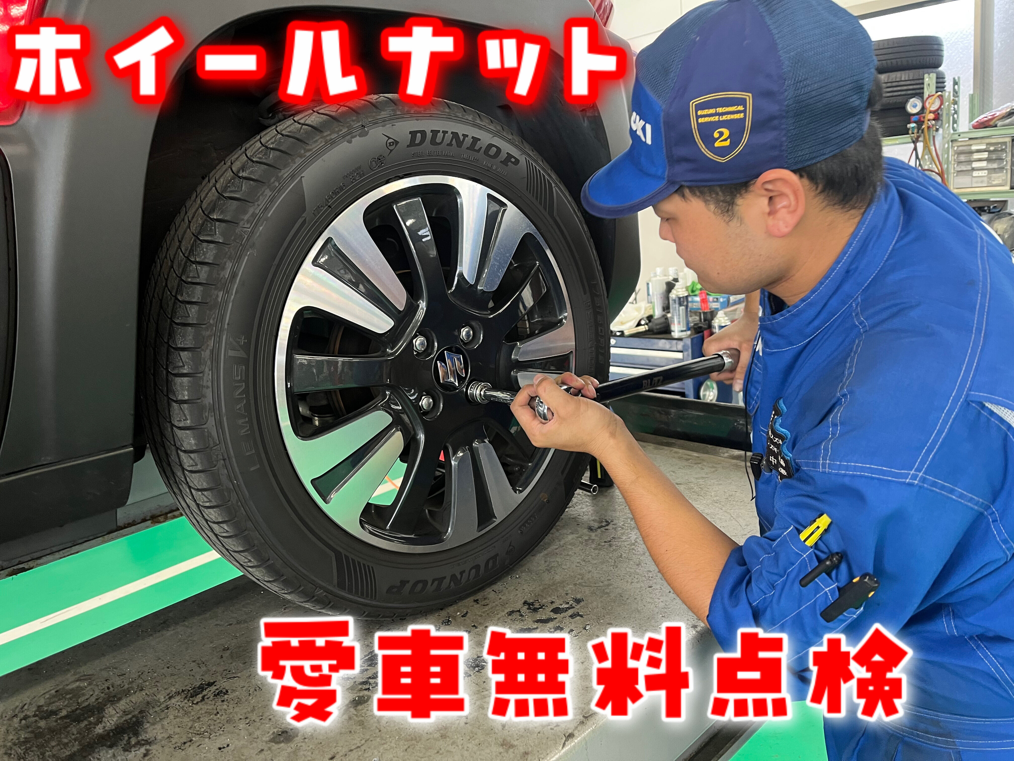 イベント/キャンペーン 2025.11.20 **【Part 14】1項目ずつご紹介します‼** こんにちは! いつも大隅営業所の ホームページをご覧いただき ありがとうございます 2025年11月30日まで 実施している愛車無料点検 15項目の点検作業内容を 1項目ずつご紹介していきます! 今回紹介するのは 『ホイールナット』 ホイールナットの緩みを 点検します! タイヤを支えるホイールナットの 緩みを点検します ホイールナットの緩みがあると 走行中にタイヤが外れることも あります 無料で点検してもらえる この期間にぜひ愛車無料点検を 受けてみませんか? ただし、2024年以降の 登録・届出の車両及び、 スズキ安心メンテナンスパック 加入のお車は愛車無料点検の 対象外とさせていただきます。 また、愛車無料点検の対象車両は スズキ車に限定させていただきます スムーズに点検を受けるためにも 事前のご予約をオススメします! WEB・お電話からのご予約を ドシドシ! お待ちしておりま~~すっ! WEB予約はコチラから ▼ ▽ ▼ お電話からの予約はコチラから ▼ ▽ ▼ TEL:099-482-2136
