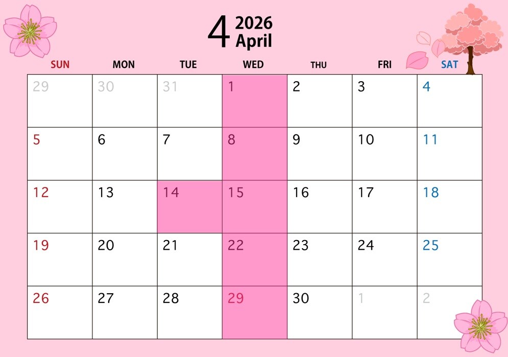 その他 2026.03.30 **4月定休日のご案内です** こんにちは! いつも大隅営業所の ホームページをご覧いただき ありがとうございます 今回は 4月 の 定休日のご案内です! 4月は毎週水曜日と 第二火曜日(14日)が 定休日となります。 ご不便をお掛け致しますが ご理解の程、宜しくお願い致します。 4月も皆様のご来店を お待ちしておりま~~すっ!