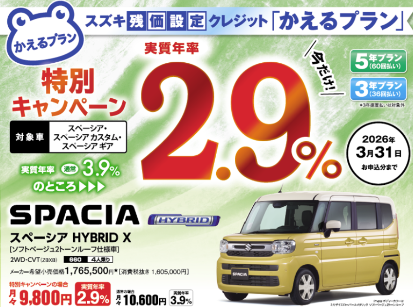特別キャンペーン実質年率2.9%でご案内