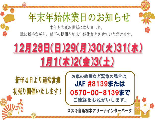 年末年始の休業日お知らせ