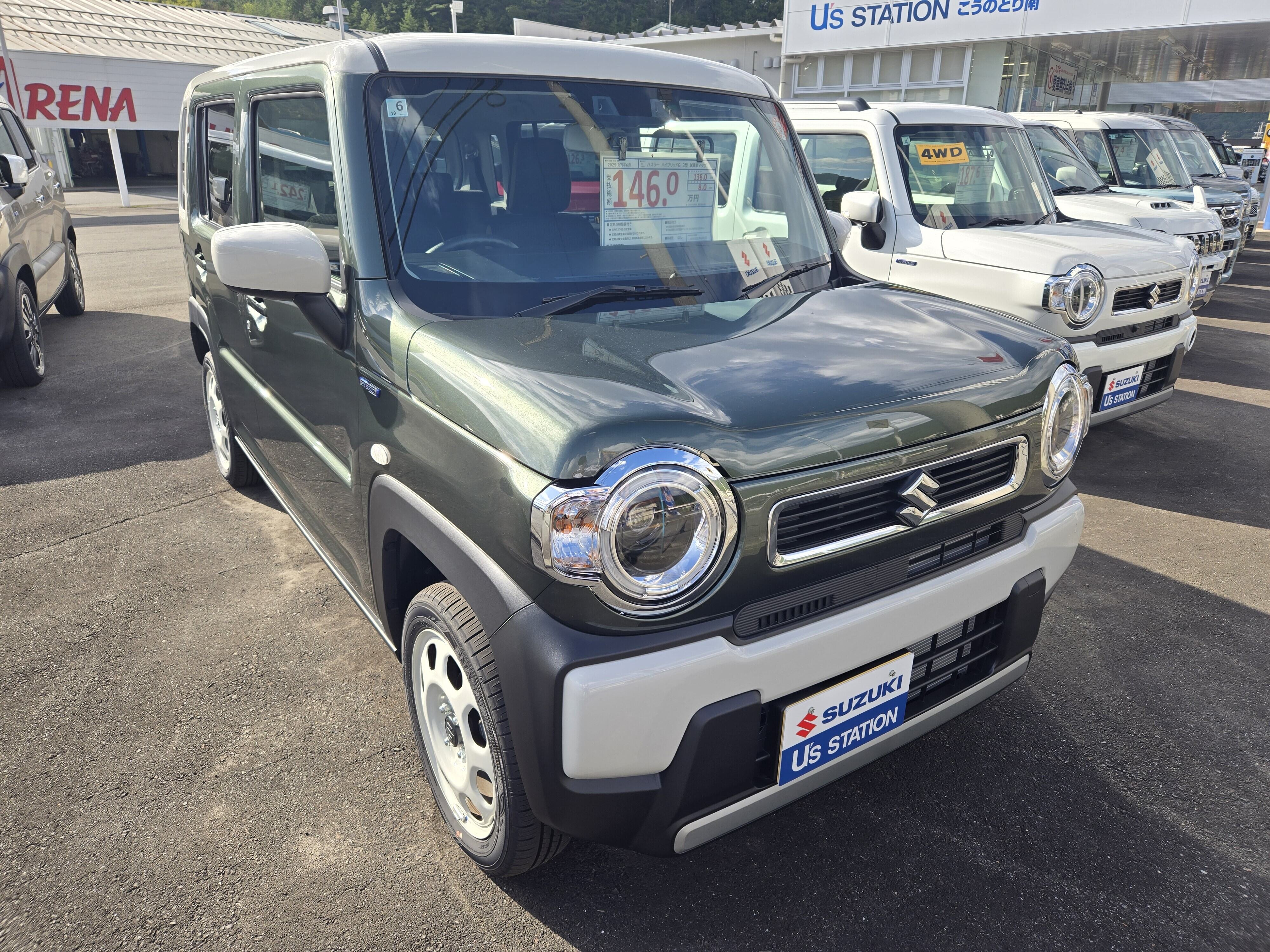 その他 2025.10.07 ☆中古車のご案内☆ 皆様こんにちは!! スズキアリーナこうのとり南店です! 新しく入った中古車のご紹介です 試乗車からハスラーが入ってきました ボディカラー:クールカーキパールメタリック×ソフトベージュ 人気なツートンルーフカラーです 走行距離:2345km 只今当店にて展示しております 詳しくは当店営業スタッフまで 皆様のご来店心よりお待ちしております こうのとり南店 谷田