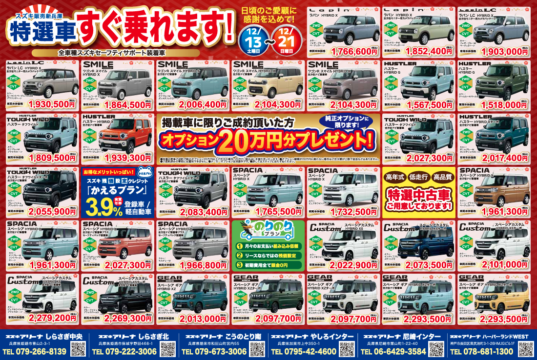 イベント/キャンペーン 2025.12.08 先行初売りフェア開催☆ キャンペーン期間:2025.12.13~2025.12.21 こうのとり南店のホームページを ご覧いただきありがとうございます 12月13日から 先行初売りフェアを開催いたします ご来店お待ちしております