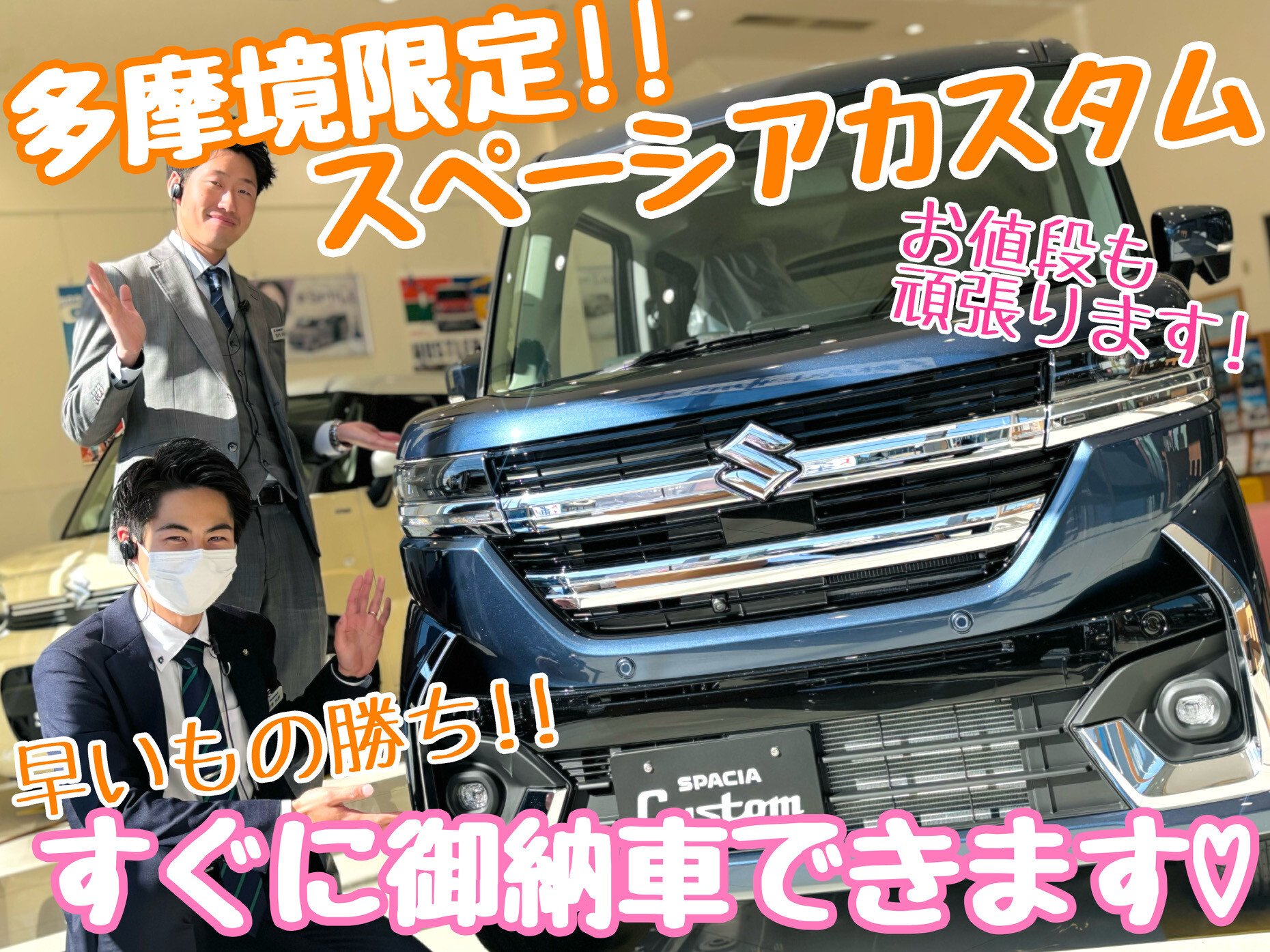 イベント/キャンペーン 2025.11.29 ☆★すぐにご納車できるお車ございます♪★☆ こんにちは! アリーナ多摩境です! 早くも11月が終わりますね 今月最後の展示会です オプションプレゼント 多摩境限定 人気車種即納車 スペーシアカスタム お車の詳細はクリック! 店内でゆっくりご覧いただけます 新型クリスビー限定 特別金利 3.9% ⇩ 2.9% このチャンス逃したらもったいない ご試乗予約はこちら ご購入相談はこちら みなさまのご来店 スタッフ一同心より お待ちしております