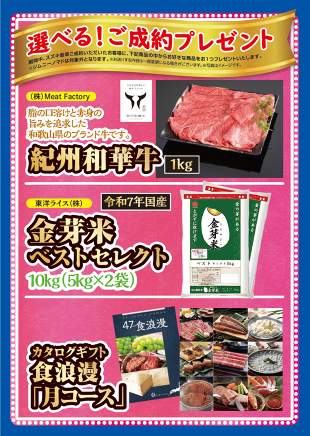 期間中、スズキ新車をご成約いただいたお客様に、