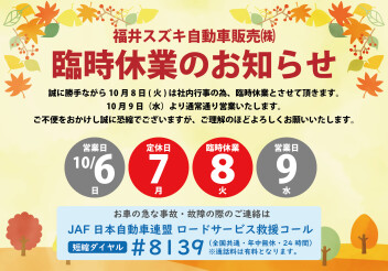 臨時休業のお知らせ