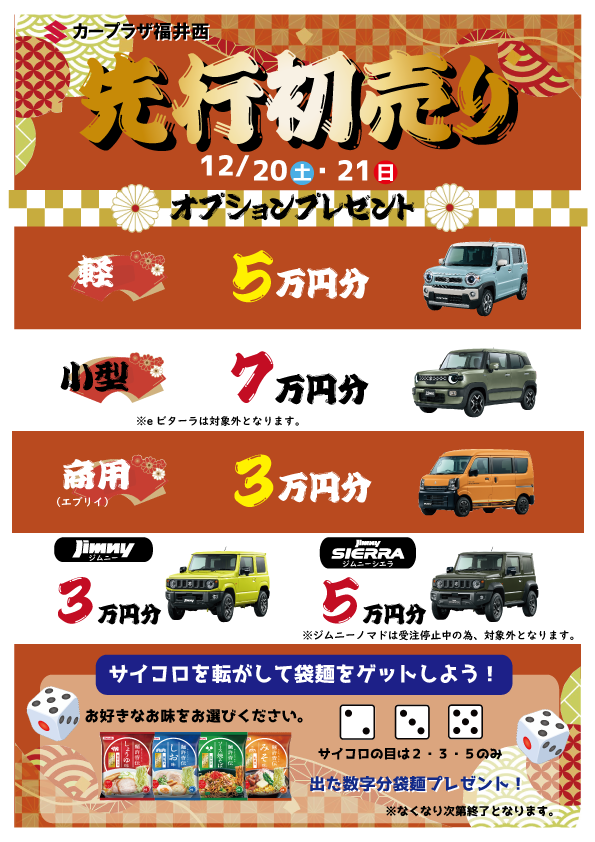 ★カープラザ福井西 先行初売り開催★