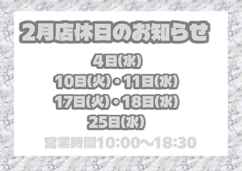 2月店休日のお知らせ
