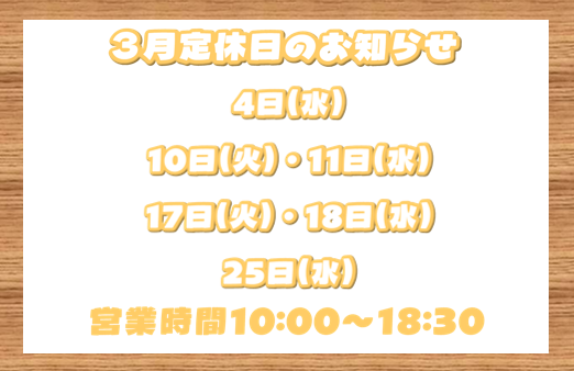 3月定休日のお知らせ
