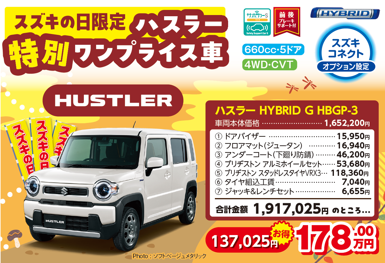 スズキの日期間中(11/1~11/9)のご成約特典は…