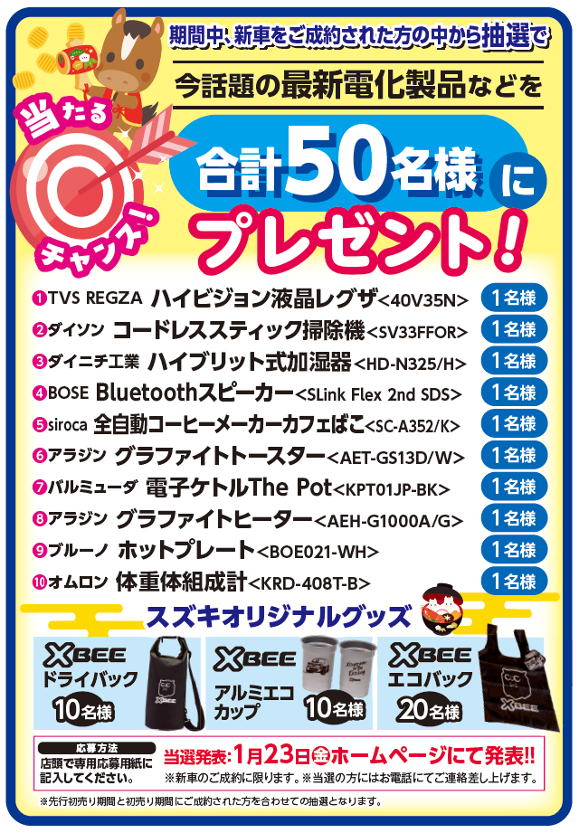 スズキの日期間中(11/1~11/9)のご成約特典は…