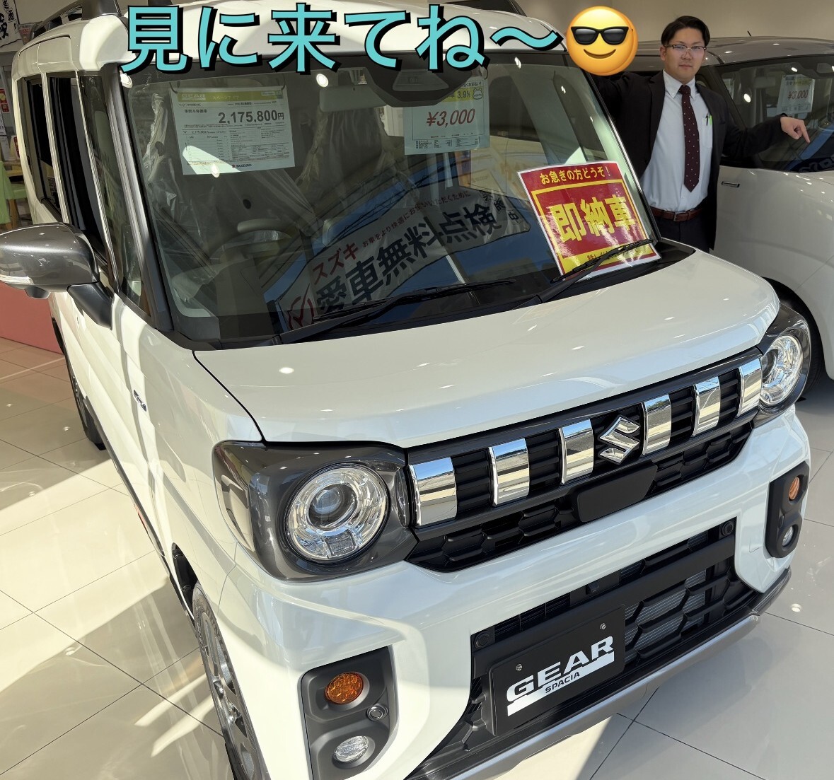 スタッフによるクルマ紹介 2025.11.20 新しい展示車来ました! 車名 スペーシア ギア こんにちは!スズキアリーナ豊橋東です 今週は新しく入った展示車についてご紹介させてください 皆様から大人気!スペーシアギアの展示車が入りました お急ぎの方、スペーシアギアが早くほしい方、ぜひご相談ください ご来店もお待ちしております!