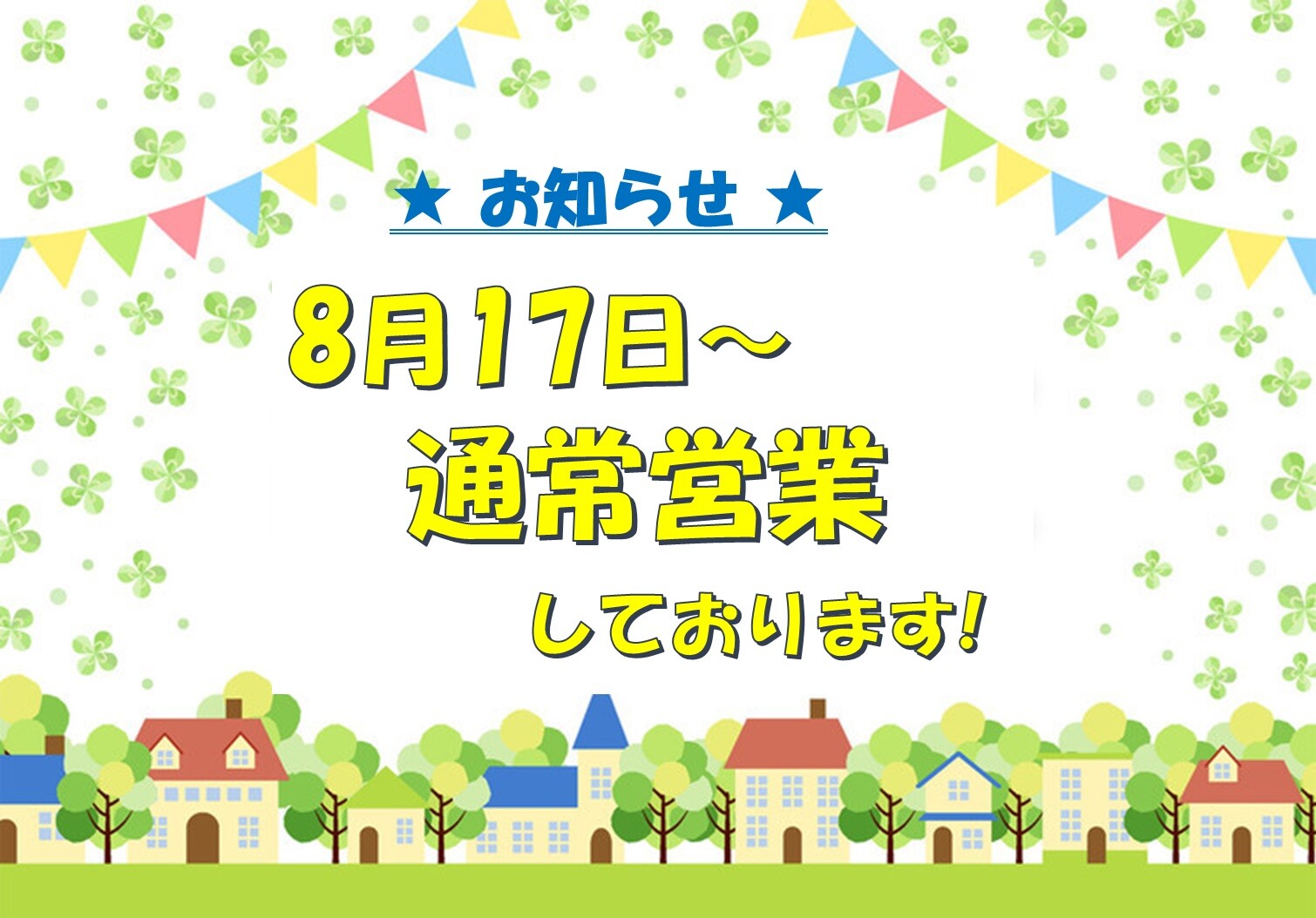 8/17より通常営業しております!
