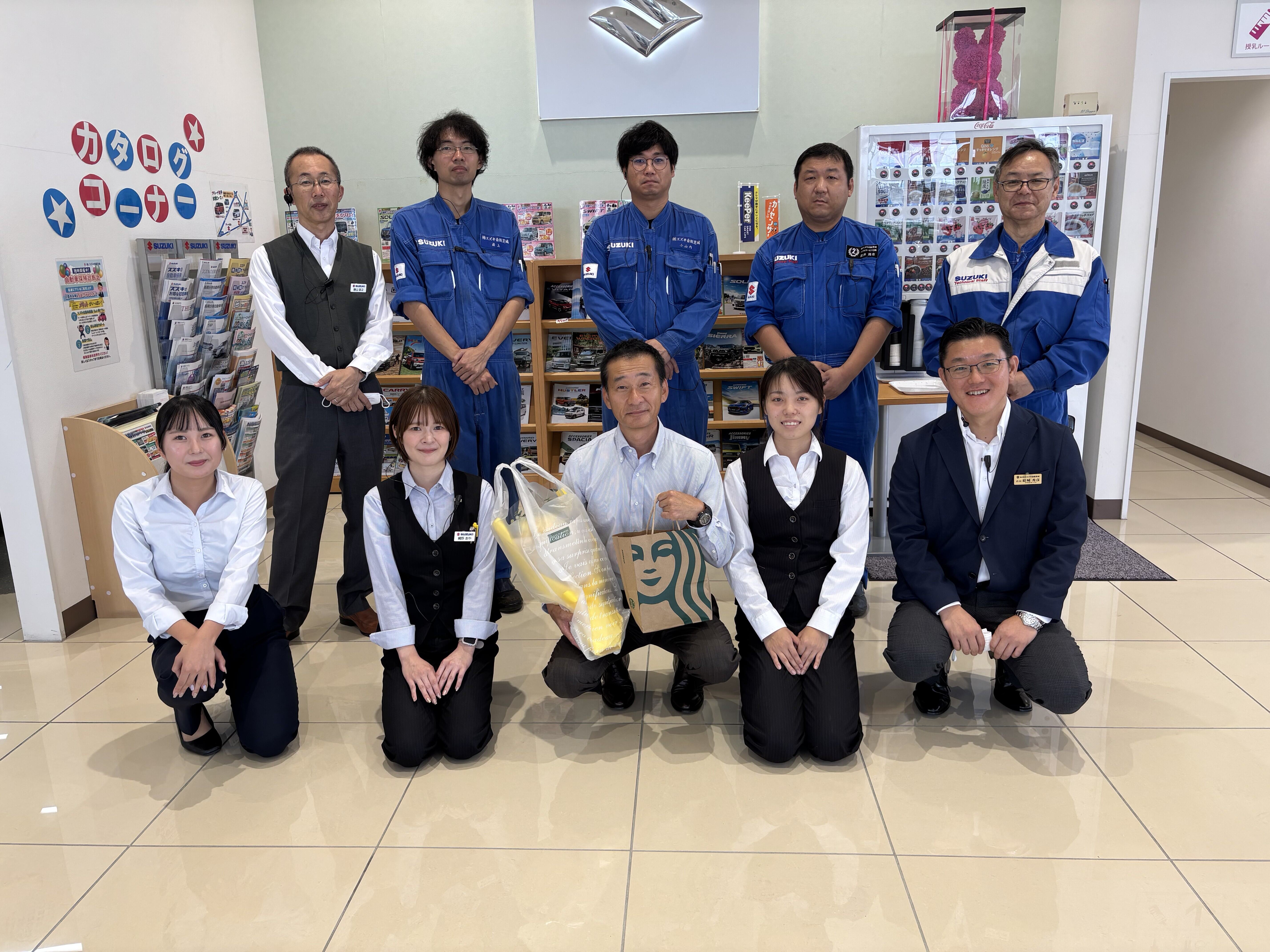 その他 2025.10.19 野呂さんありがとうございました!!! みなさまこんにちは スズキアリーナ取手店のHPをご覧いただきありがとうございます 本日を持ちまして 野呂課長が定年退職となりました 35年間、スズキのお客様最前線のスタッフとして活躍して頂きました。 本当にありがとうございました。 また、沢山のお客様、ステークホルダーの皆様には大変感謝しております。 本当にお世話になりました 野呂さん これからも元気に過ごしてください