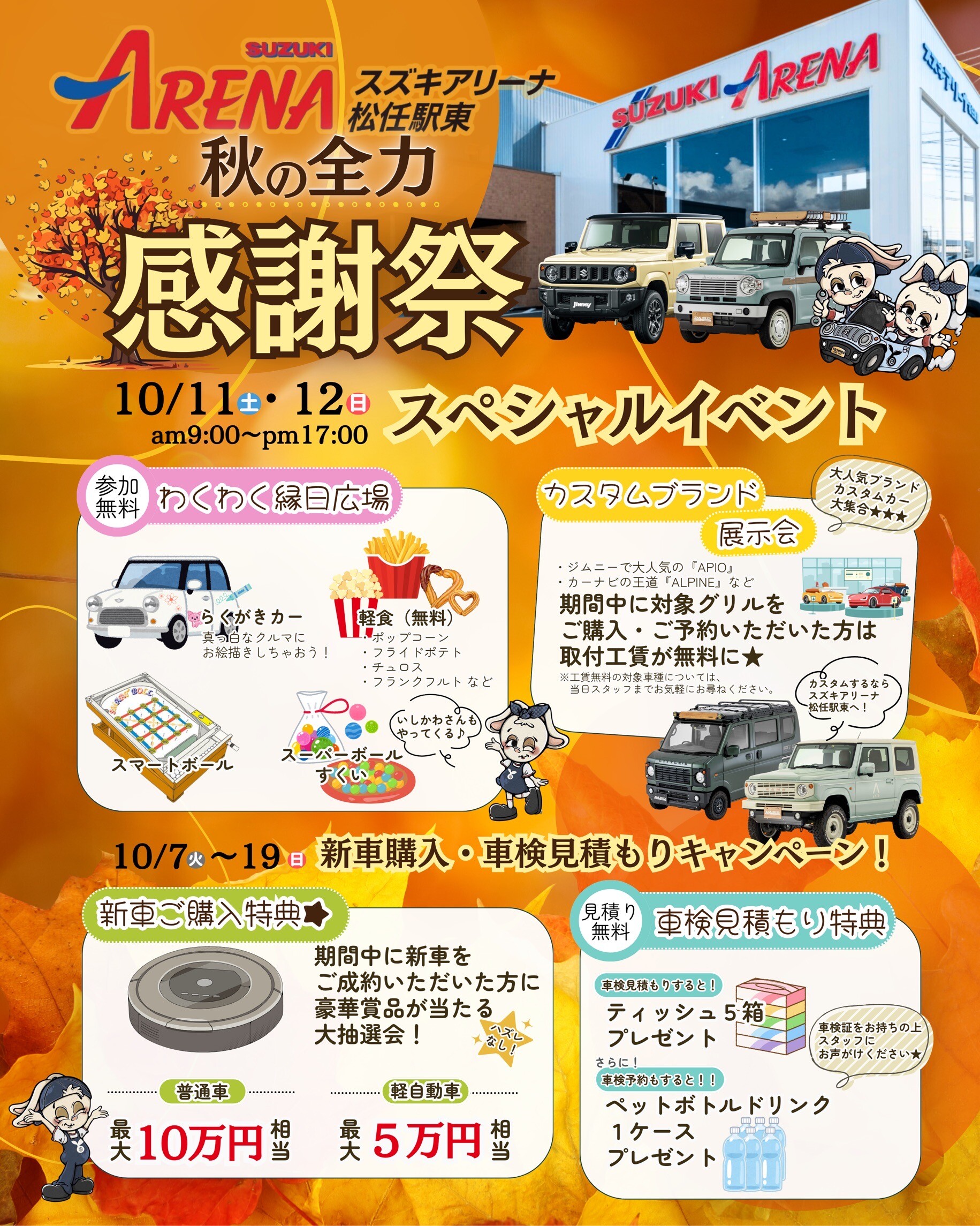 ★10月7日からは、新車購入・車検見積もりキャンペーンも実施いたしますので