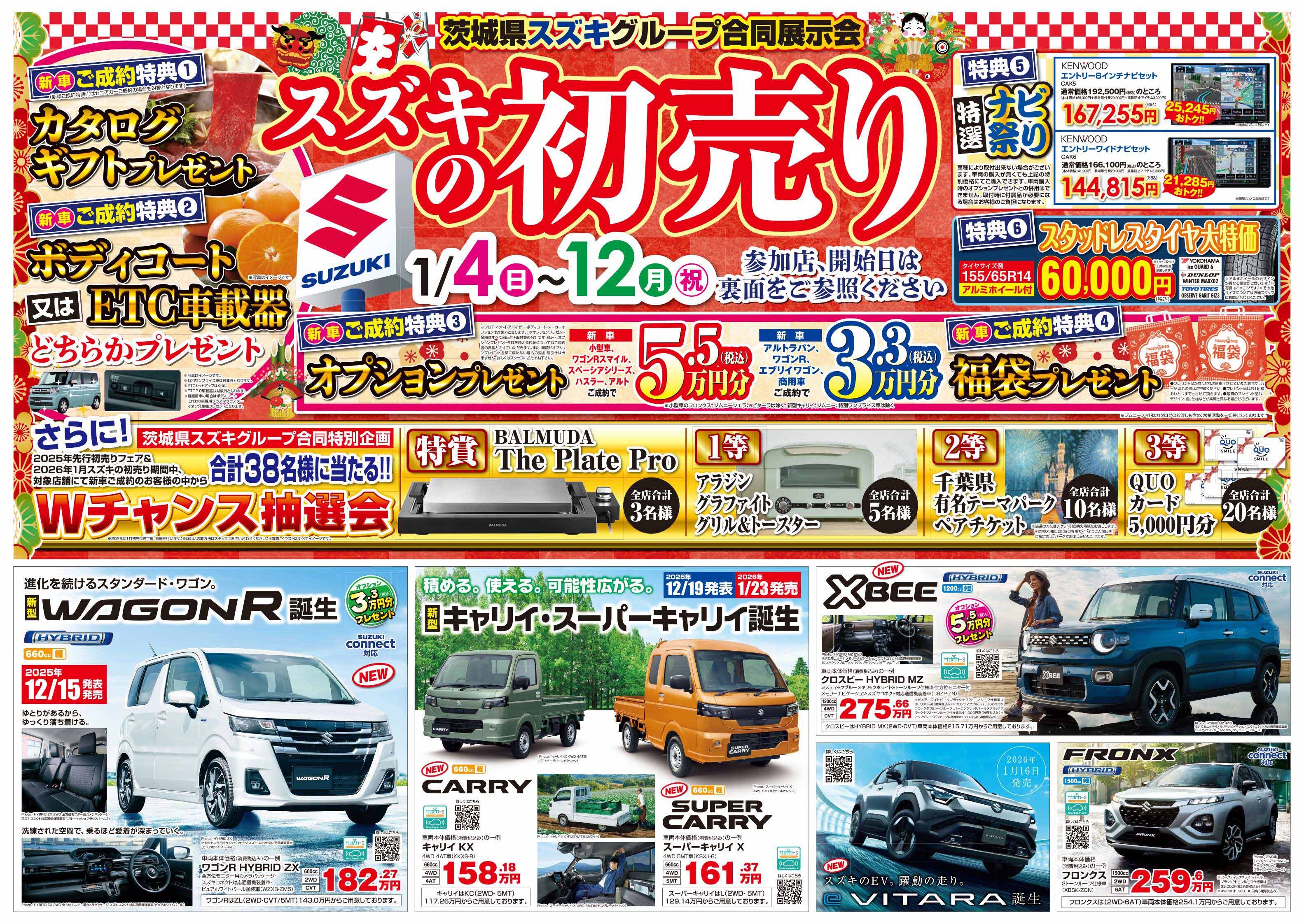 イベント/キャンペーン 2026.01.04 本日10時より営業です! キャンペーン期間:2026.01.04~2026.01.12 本日10時より 初売りイベント開催です 新車ご成約プレゼント大変満載です とにかくいつも以上にお得お得お得 事前ご予約いただけるとスムーズにご案内可能です よろしくお願いします たくさんのご来場 こころよりお待ちしております