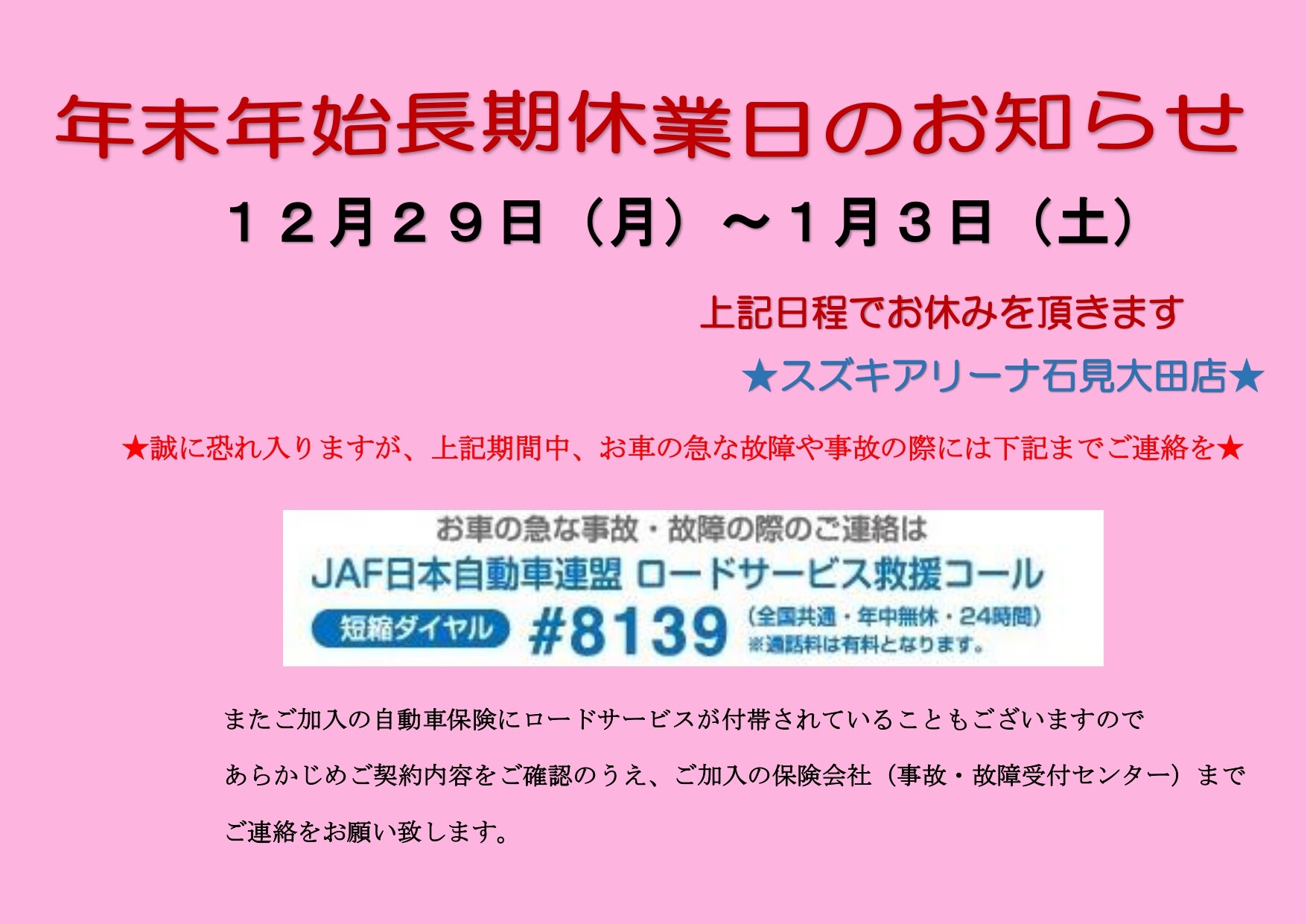 年末年始の休業日についてのお報せ