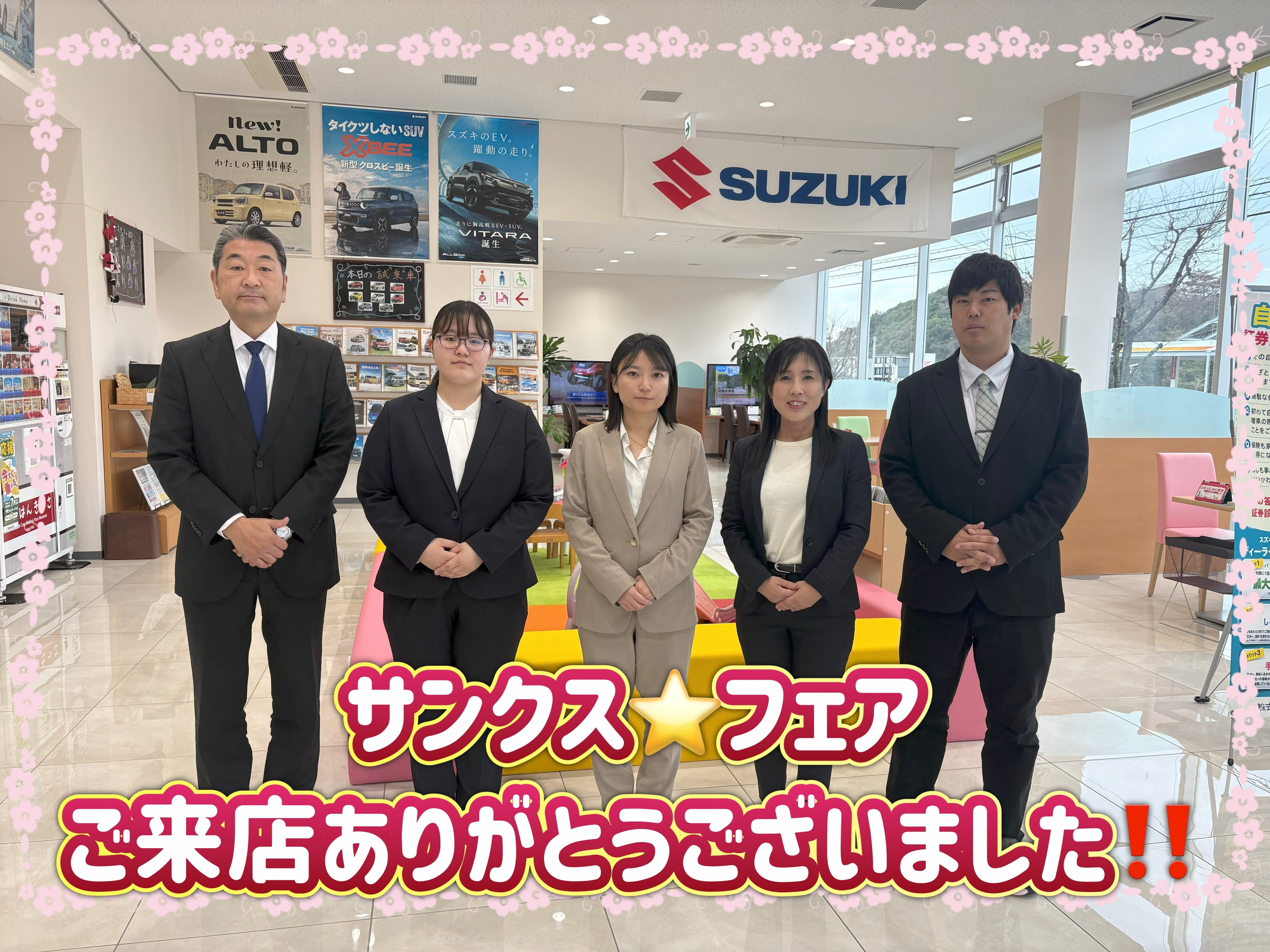 イベント/キャンペーン 2026.03.30 サンクス☆フェア ご来店ありがとうございました!! こんにちは 3月6日(金)より始まりました サンクスフェア は 本日をもって終了させていただきました。 たくさんのお客様にご来店・ご成約いただきまして、 誠にありがとうございました スタッフ一同、たいへん嬉しく思っております。 さて、いよいよ明後日から新年度が始まりますね 今年度もありがとうございました! 来年度も、お客様の安心・安全なカーライフを 全力でサポートしてまいりますので、 どうぞよろしくお願いいたします 皆様のご来店を心よりお待ちしております