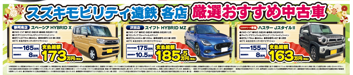 モビリティ遠鉄の四輪各店にて厳選した中古車